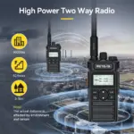 RT86S walkie talkie with a 1.46inch LCD display; large buttons; navigation menu key; users check the battery power and channel information all day intuitively; also; they can set the needed information easily without using the PC.