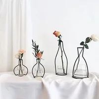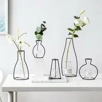 Retro Iron Line Table Flowers Vase Pot Ornament Metal Plant Holder Nordic Styles Flower Vase Home Garden Decorations Wedding