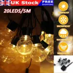 Retro Solar String Lights Outdoor Garden LED Festoon Party Globe 20 Bulbs Light