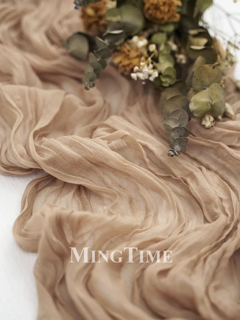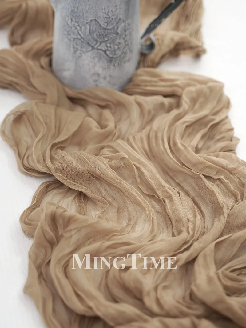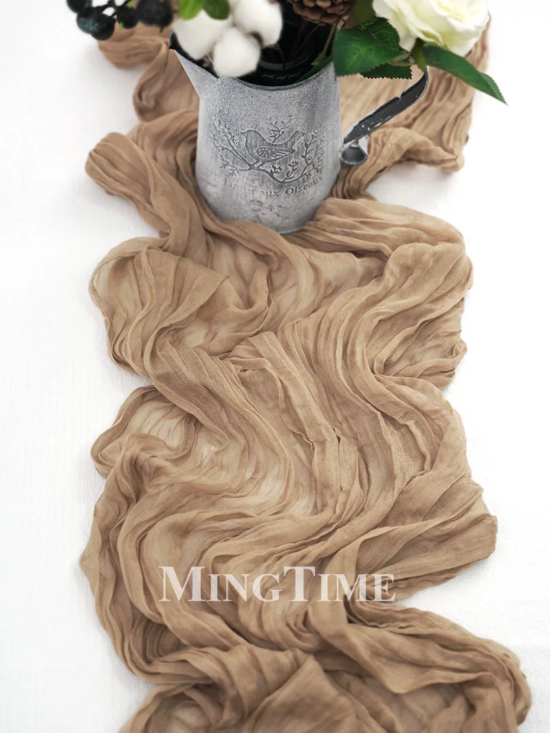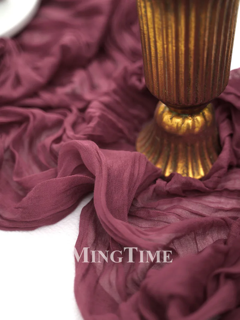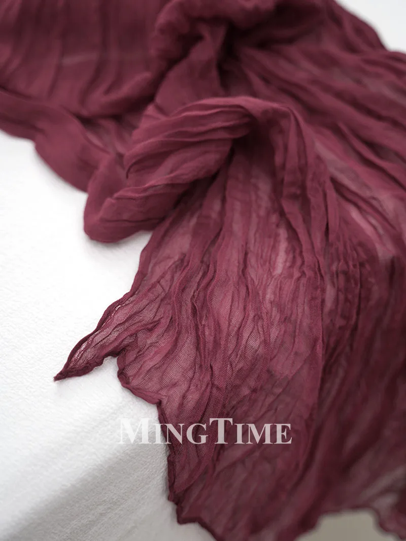 Retro Style Burgundy Pleated Table Runner Semi-Sheer Gauze Material Adding Nostalgic Charm to Weddings Parties and Christmas