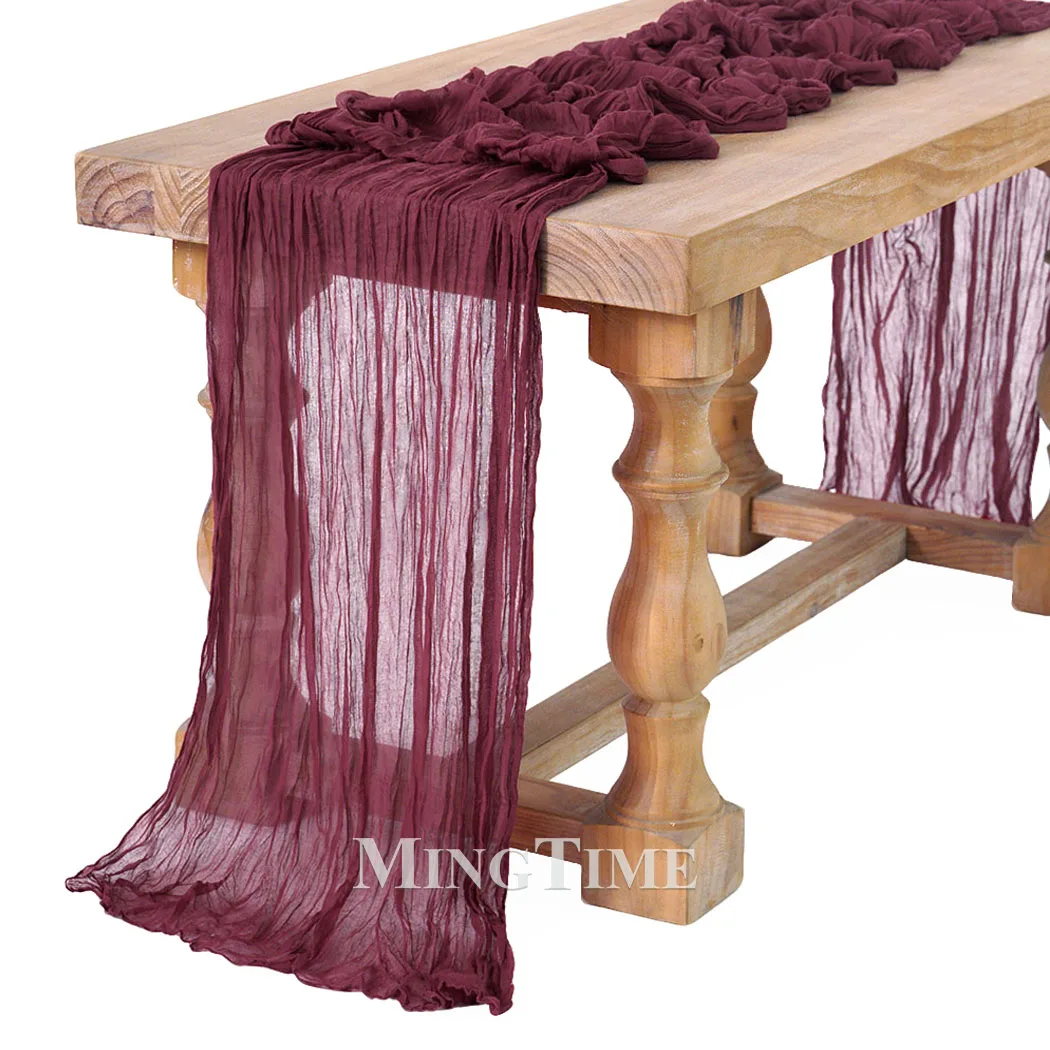 Retro Style Burgundy Pleated Table Runner Semi-Sheer Gauze Material Adding Nostalgic Charm to Weddings Parties and Christmas