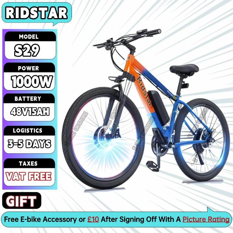 Be the first to review “Ridstar S29 Electric Bicycle 1000W Motor 48V 15AH Removable Lithium Battery 29*2.1inch Electric Bike City Mountain Road E bike”