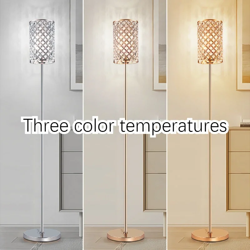 rn LED floor lamp Gold/Silver luxury crystal Lampshade Home Bedroom Bedside Decor Light Hotel Living Room Sofa Standing Lamp
