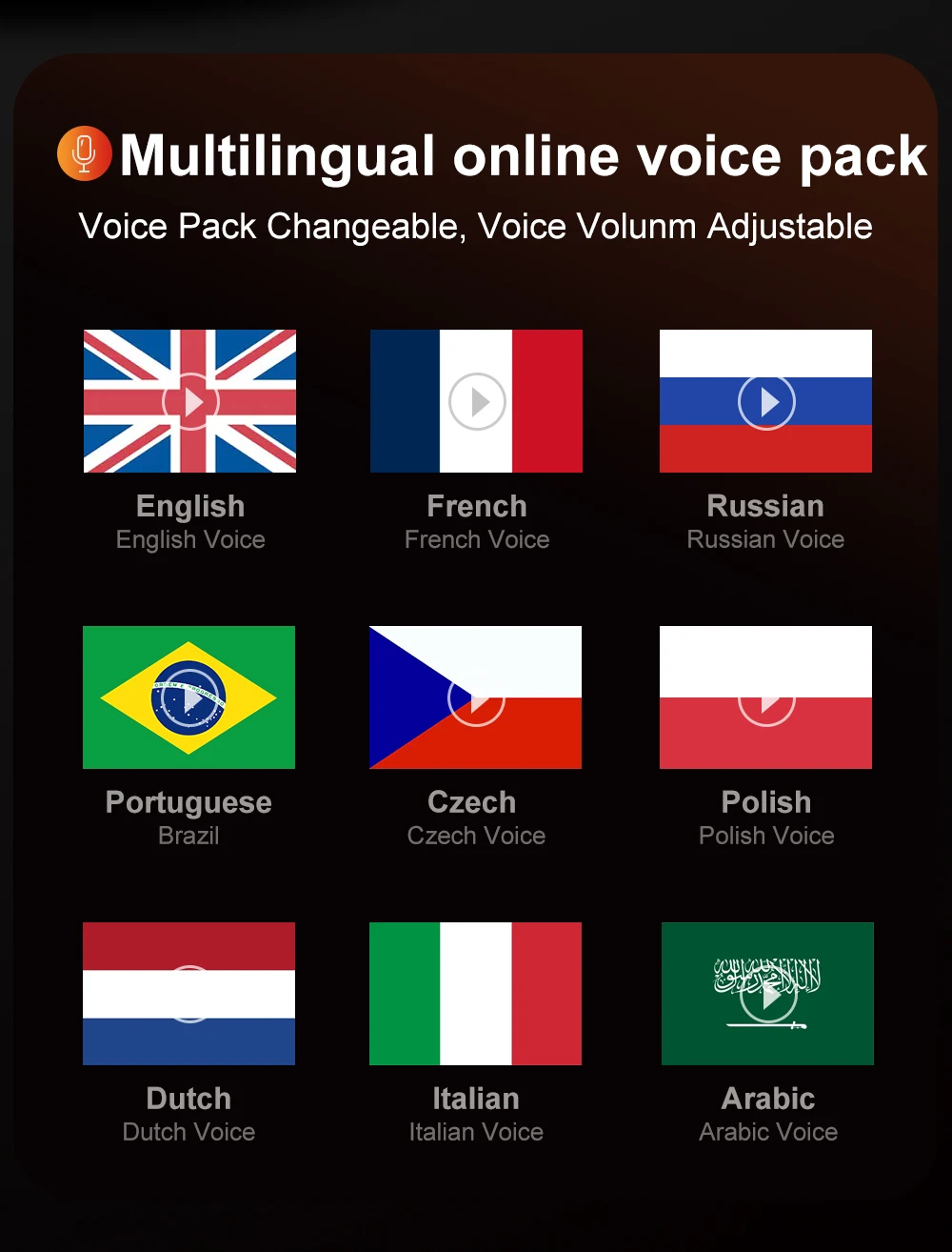 16. Multilingual online voice pack for your choice. Voice Pack Changeable, Voice Volunm Adjustable