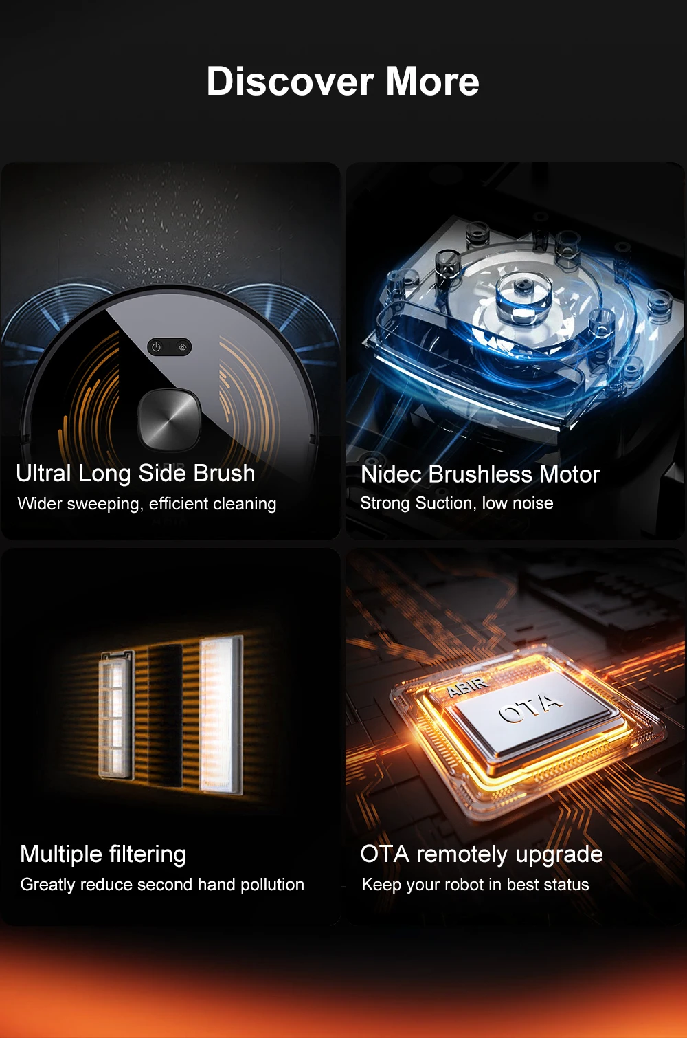 Our dustbin not only features powerful 50,000Pa suction and a 3.2L large dustbag but also comes with an intelligent self-emptying system, making cleaning effortless!