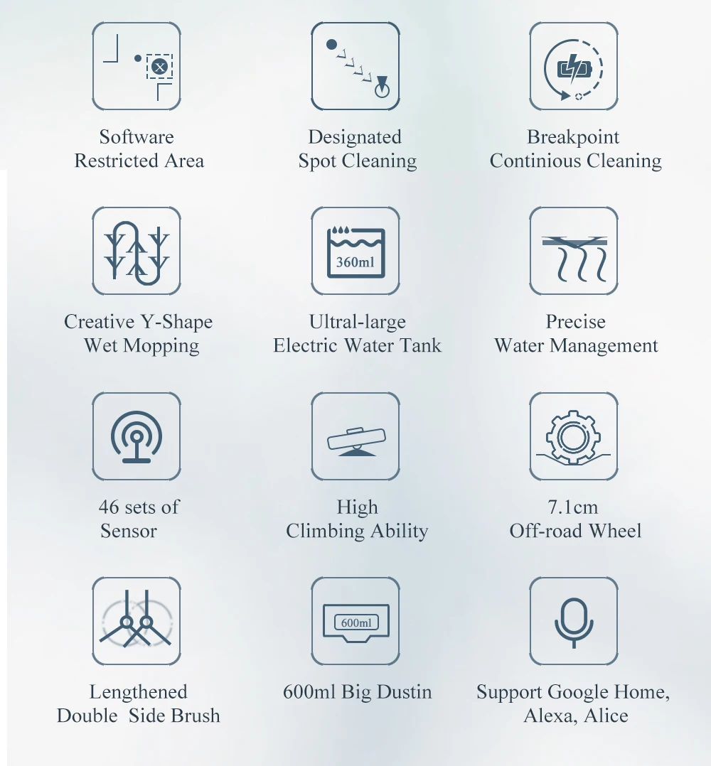 3.X8 has TOF wisdom sensor, UV lamp, Unique Algorithm Program, Y shape simulated artificial mopping, multi-map Management, multilingual Online Voice Pack, etc,. More functions than other brand!