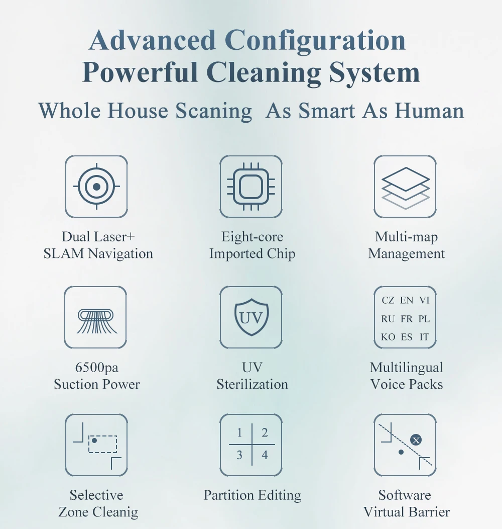 1. X8 has Dual Laser+SLAM+TOF 3D Navigation& Eight-core Imported Chip, Which is more advanced than other LDS robot.
