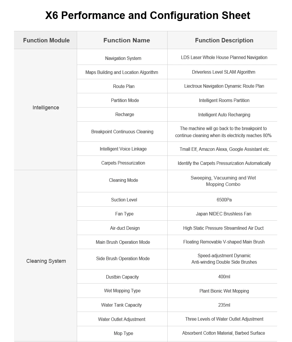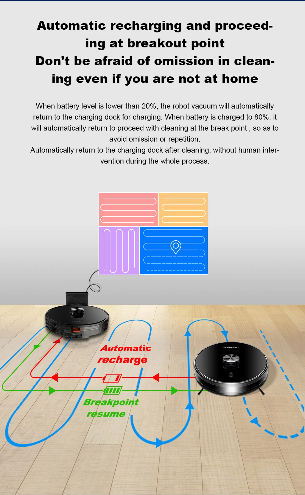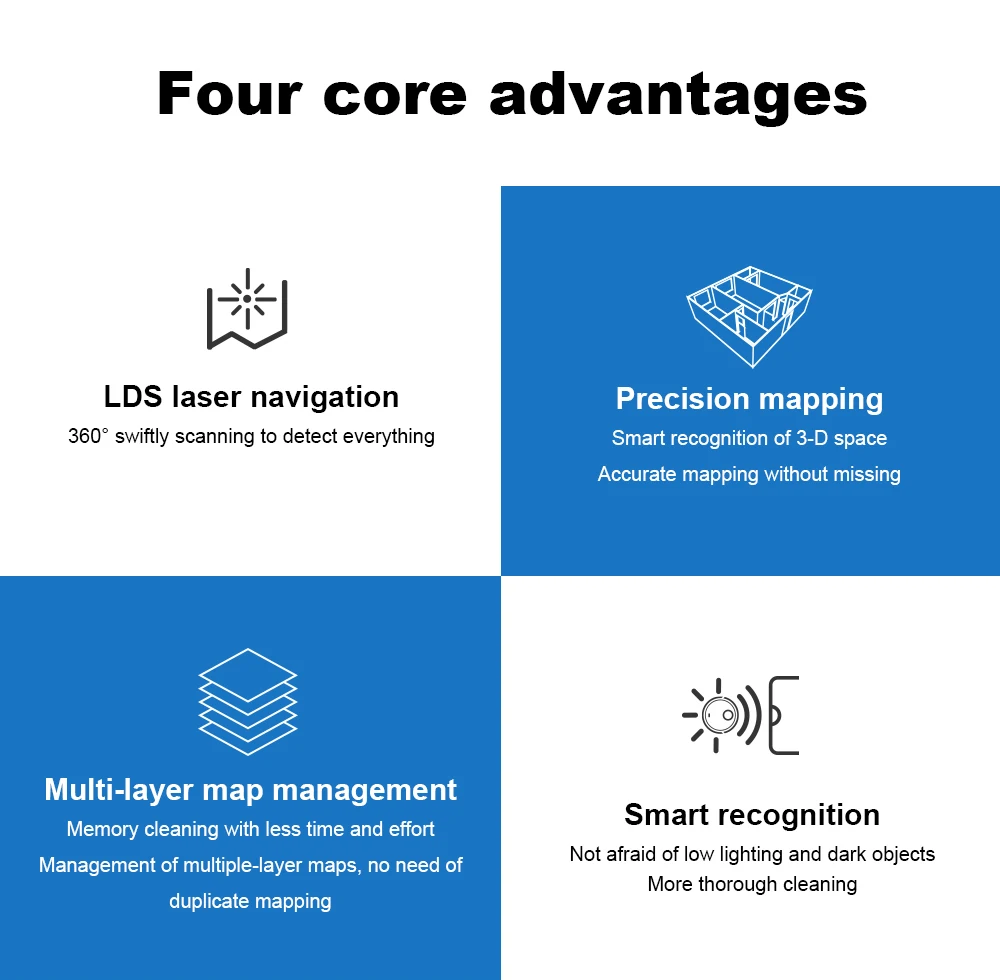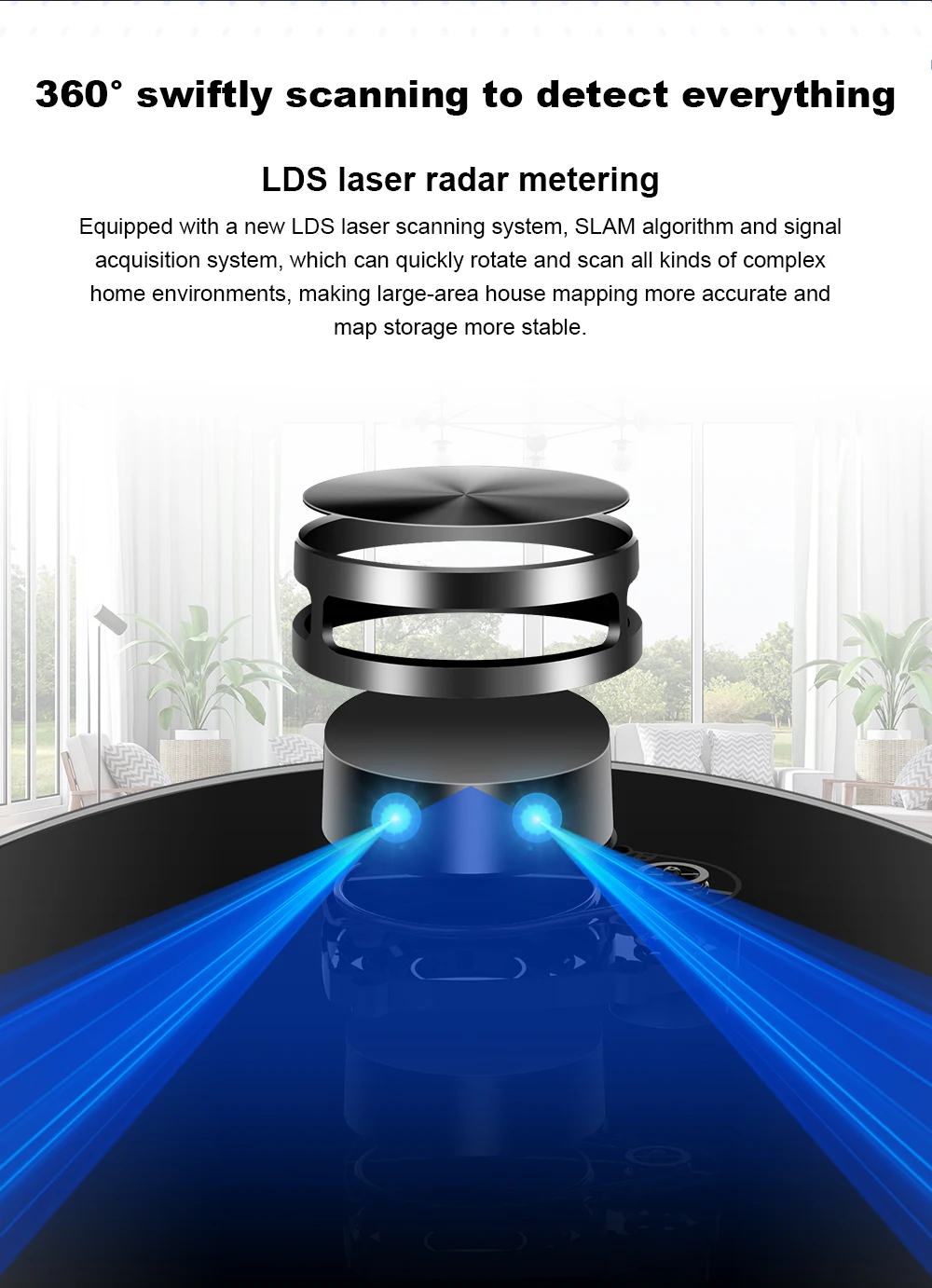 - Navigation: Lidar + SLAM, 360° Swiftly Scanning