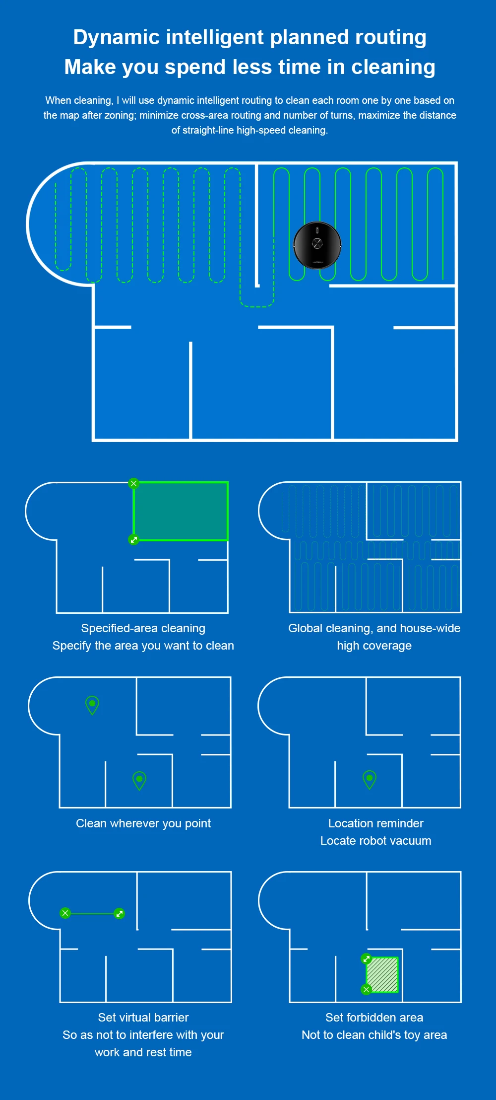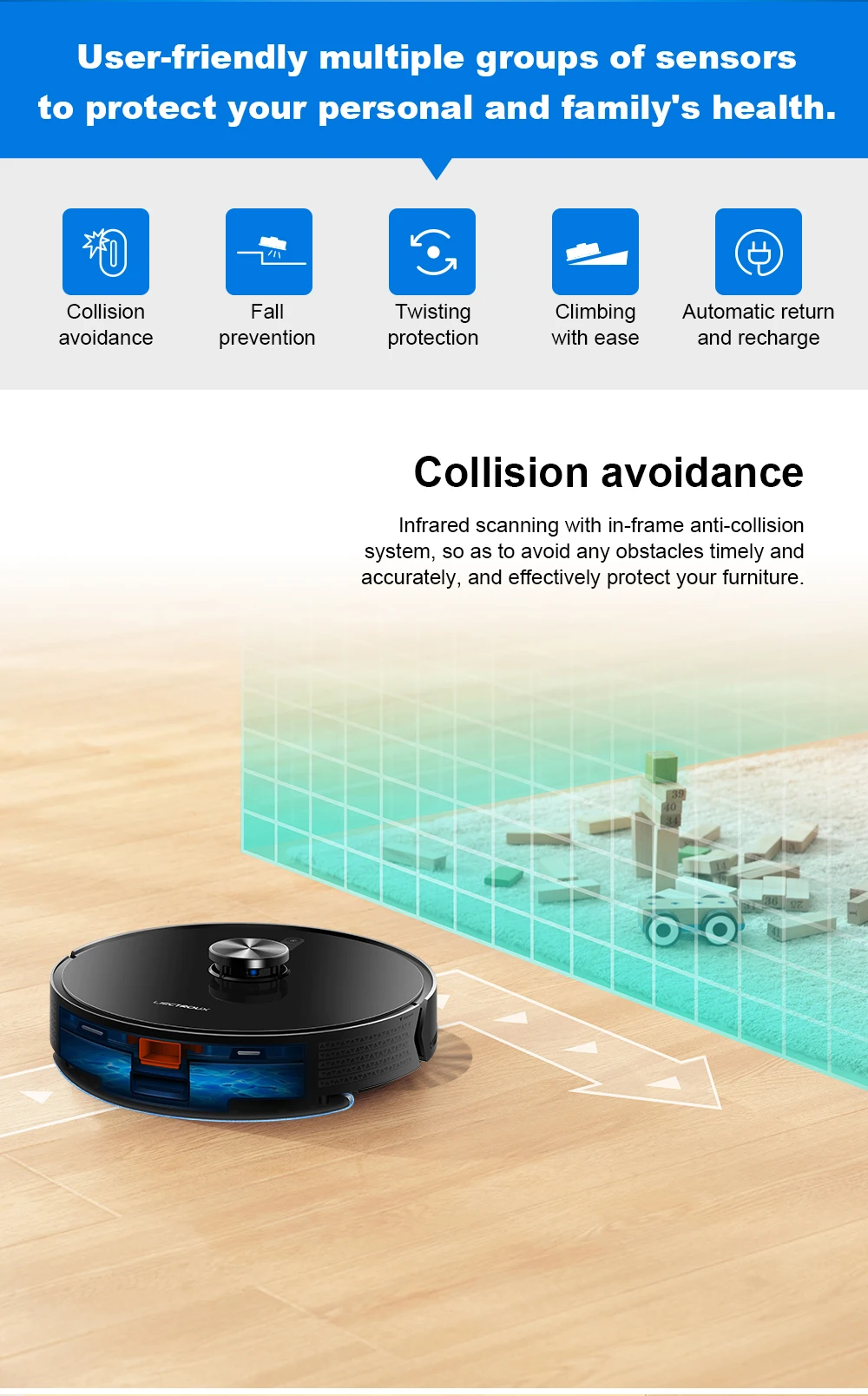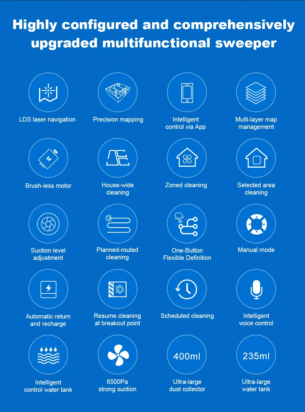 - Navigation: Lidar + SLAM, 360° Swiftly Scanning
