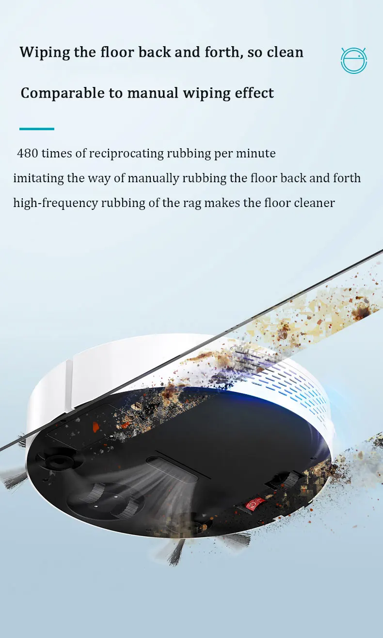 480 times of reciprocating rubbing per minute, imitating the way of manually rubbing the floor back and forth, high-frequency rubbing of the rag makes the floor cleaner