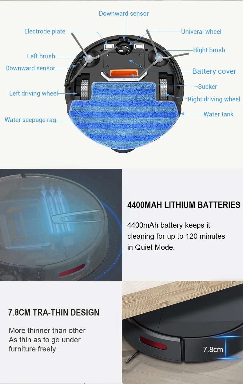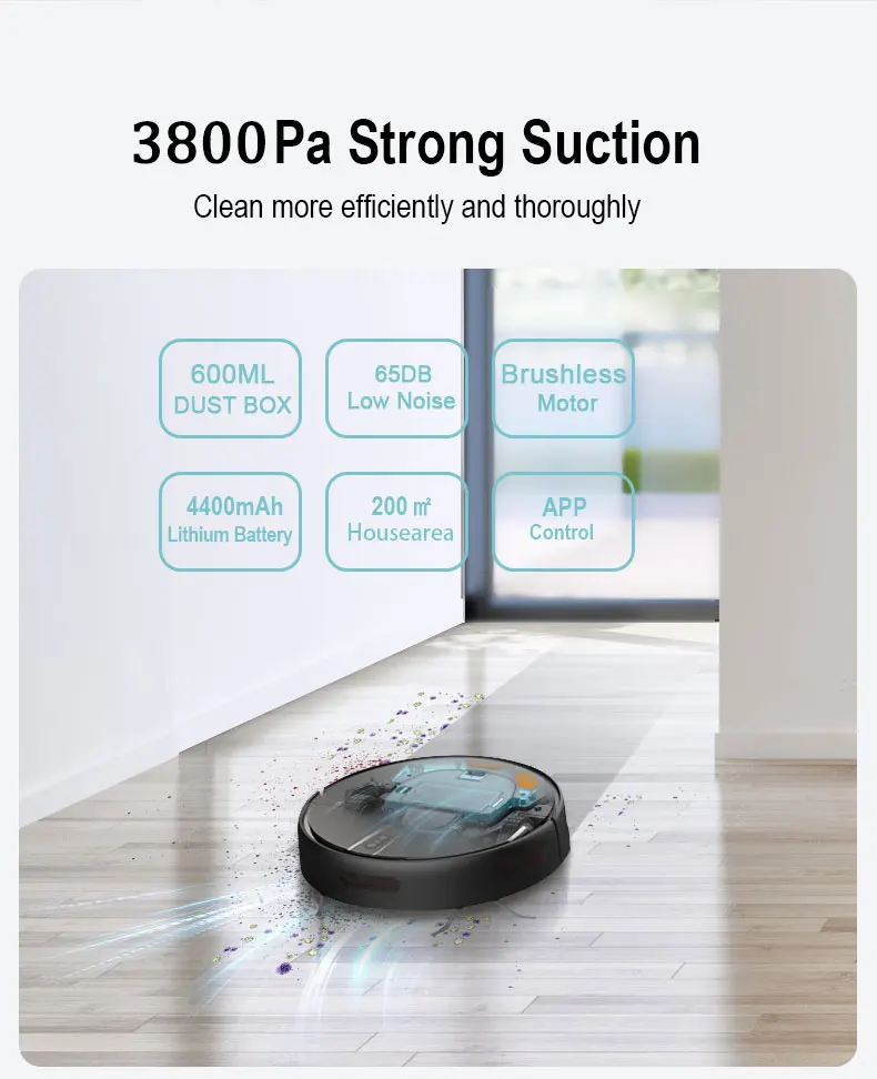 Robot Vacuum Smart Mop Cleaner With 3800PA Suction APP& Voice Control Autocharge Sweeping Floor Cleaning For Home Robotic Vacuum