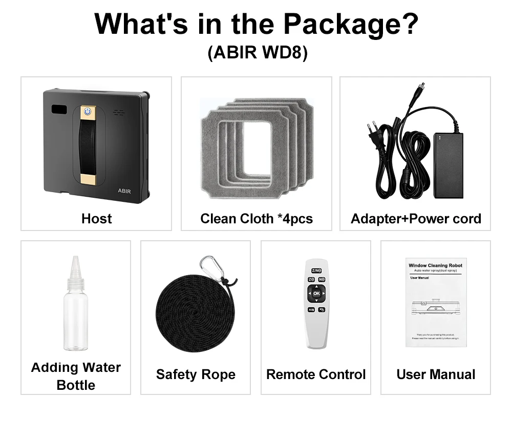 Robot Window cleaner ABIR WD8,Dual Water Spray,Smart Memory,High Vacuum Suction, Laser Sensor, Home Wall Glass Cleaning Robot