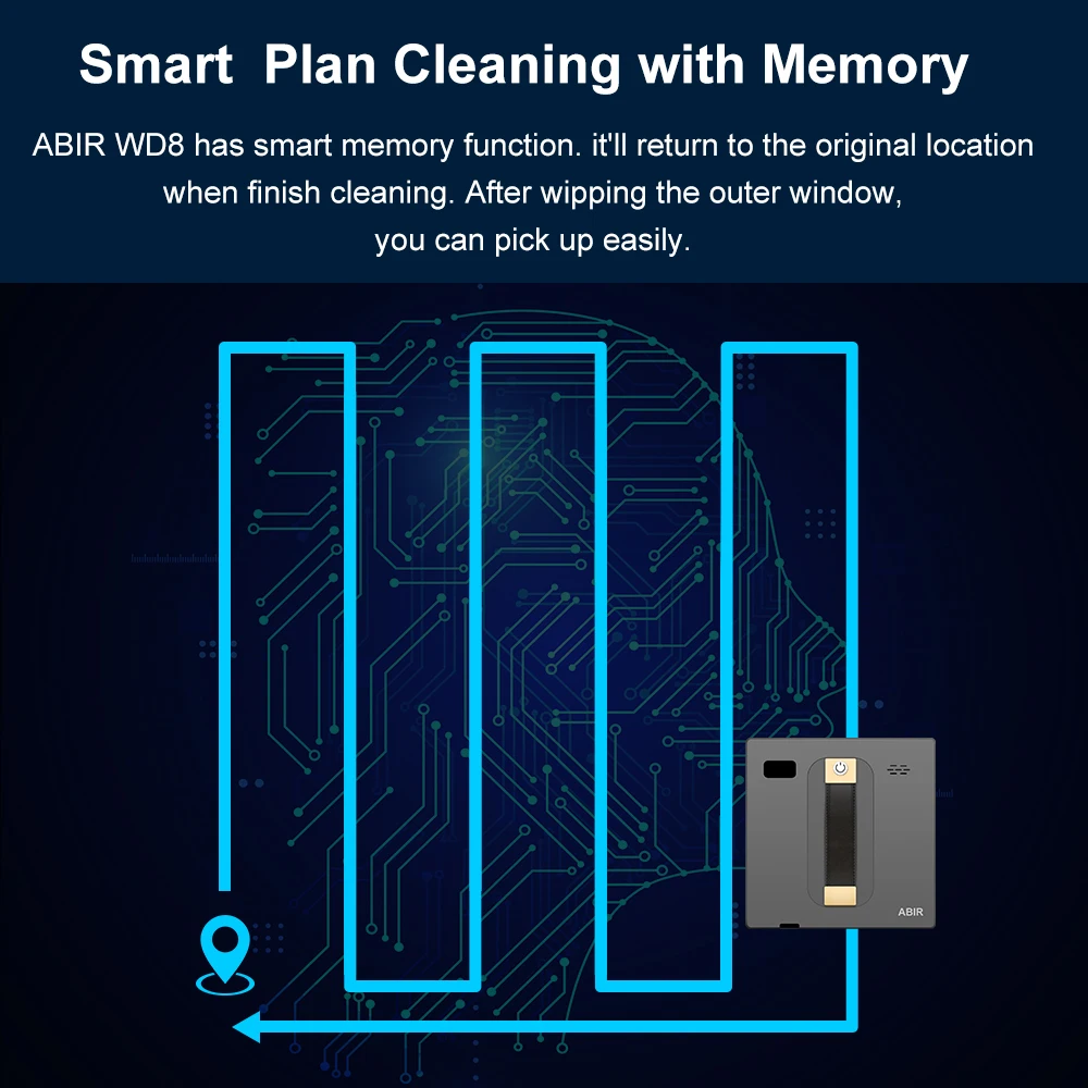 Robot Window cleaner ABIR WD8,Dual Water Spray,Smart Memory,High Vacuum Suction, Laser Sensor, Home Wall Glass Cleaning Robot