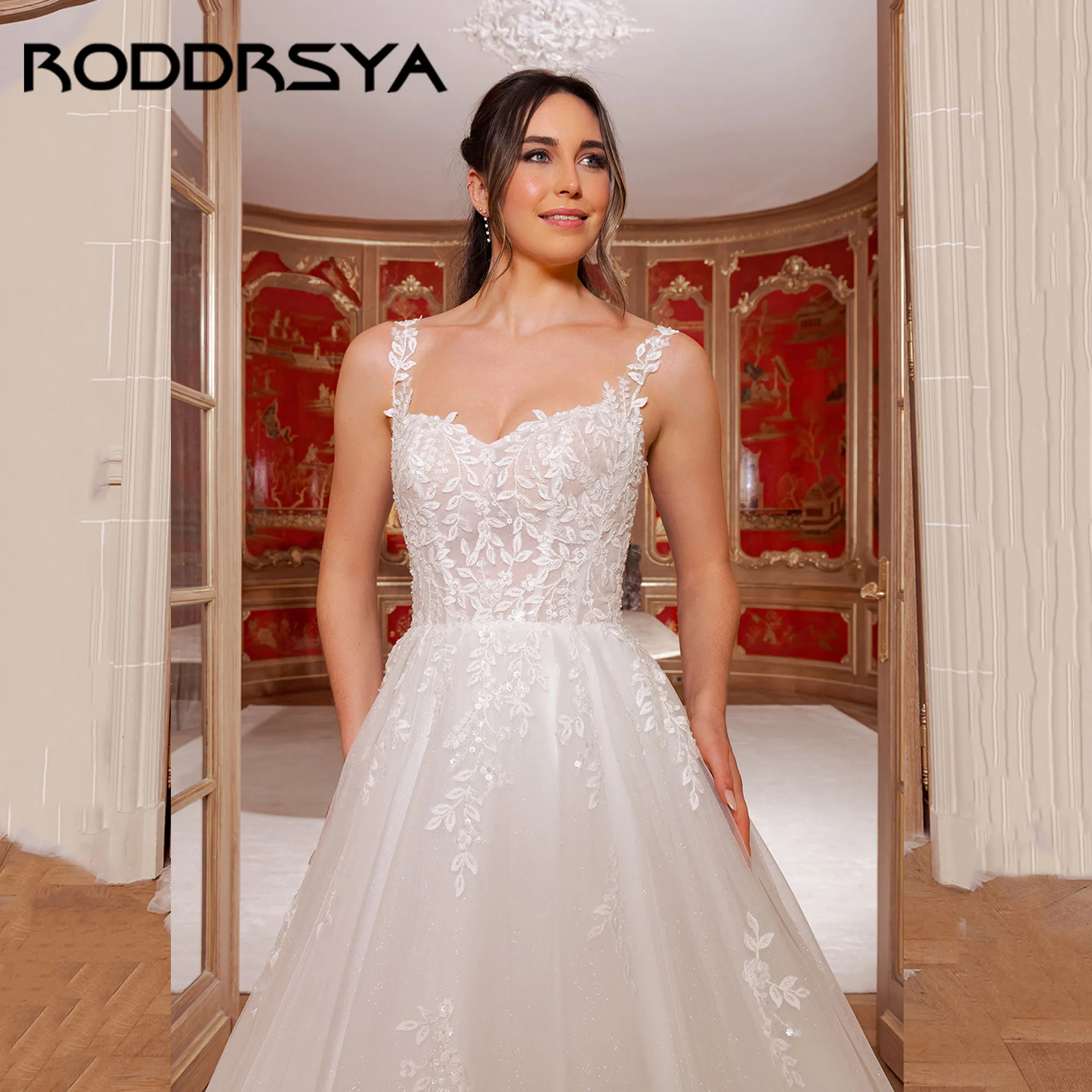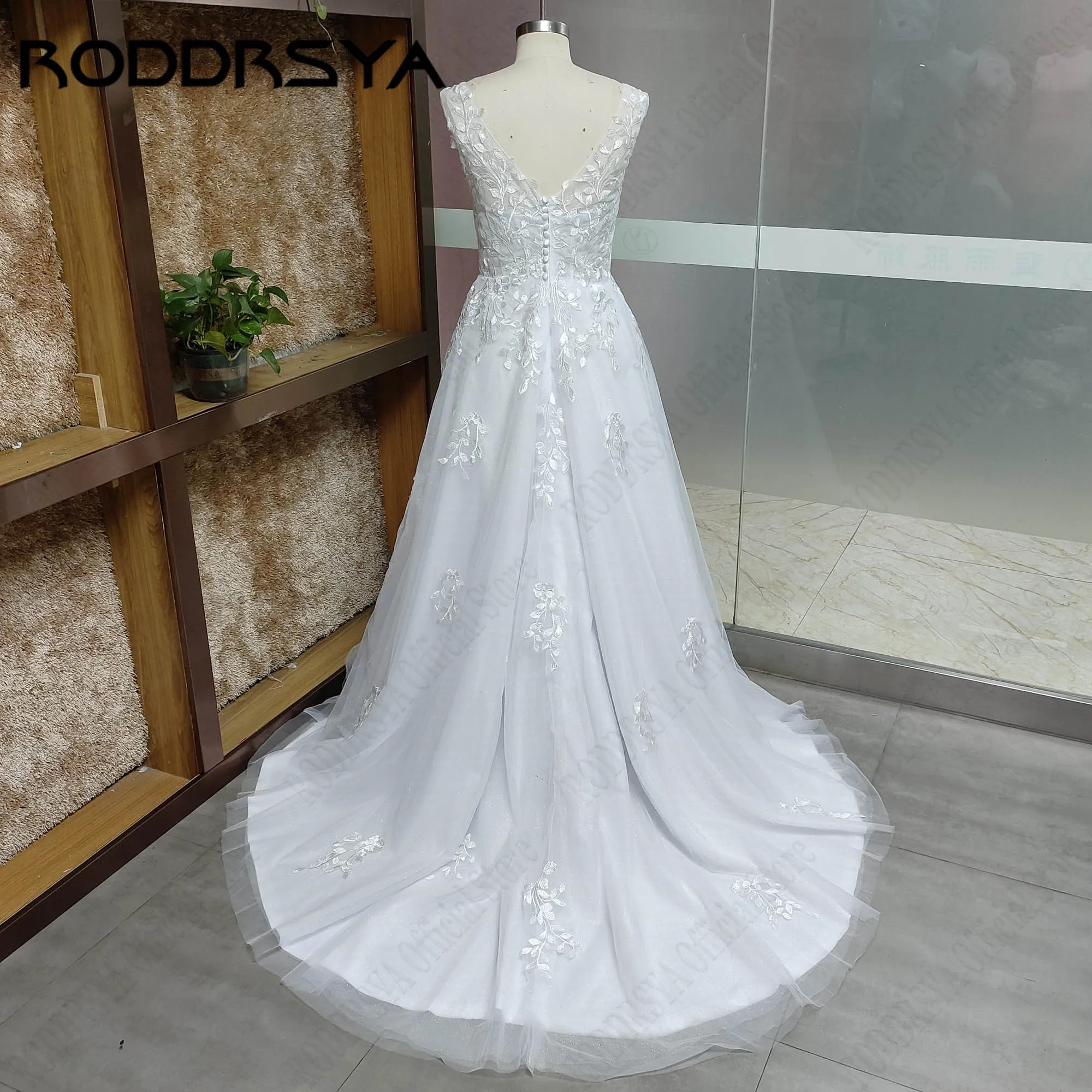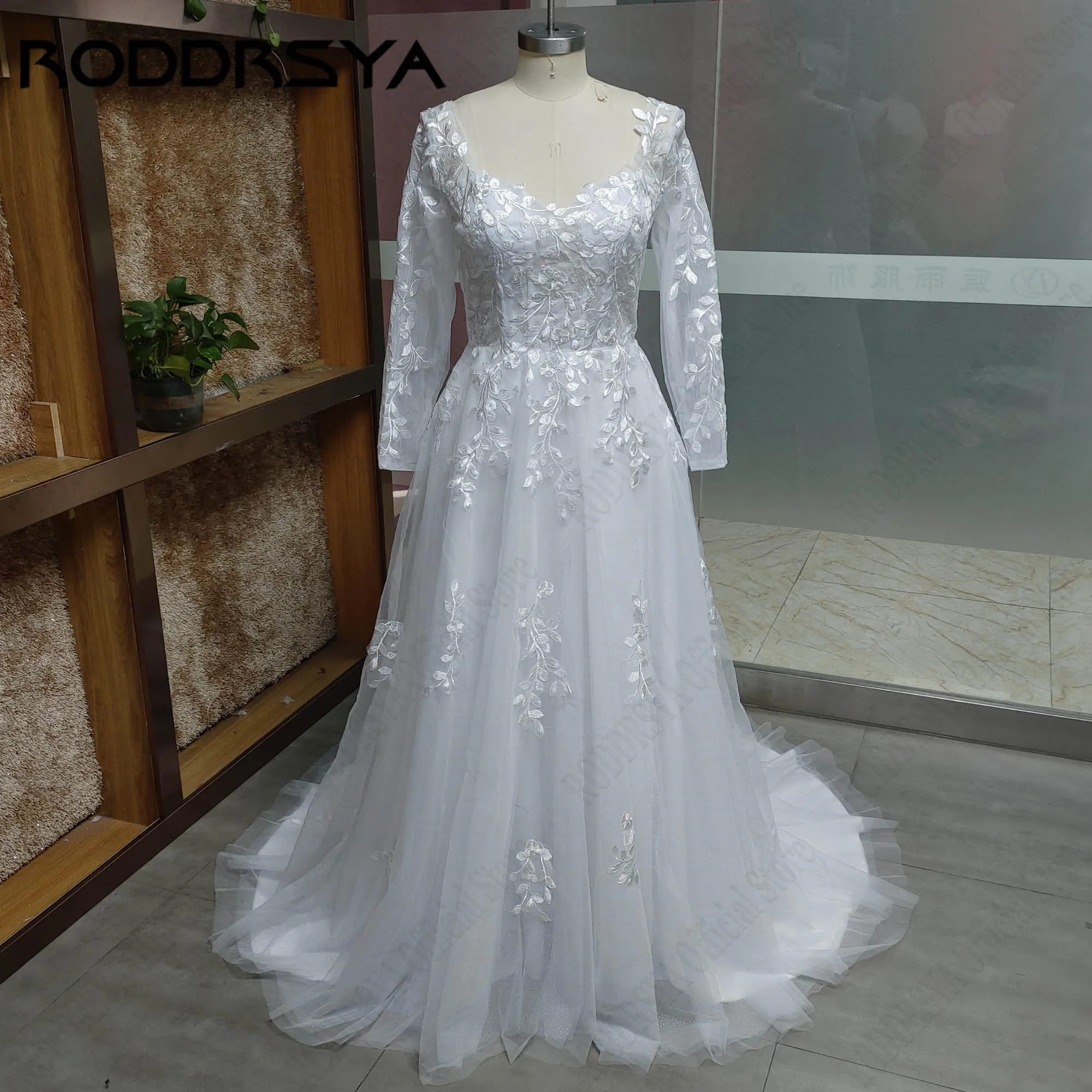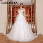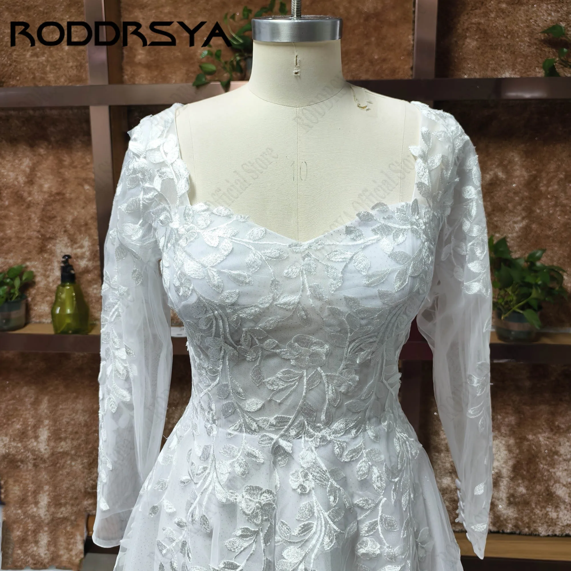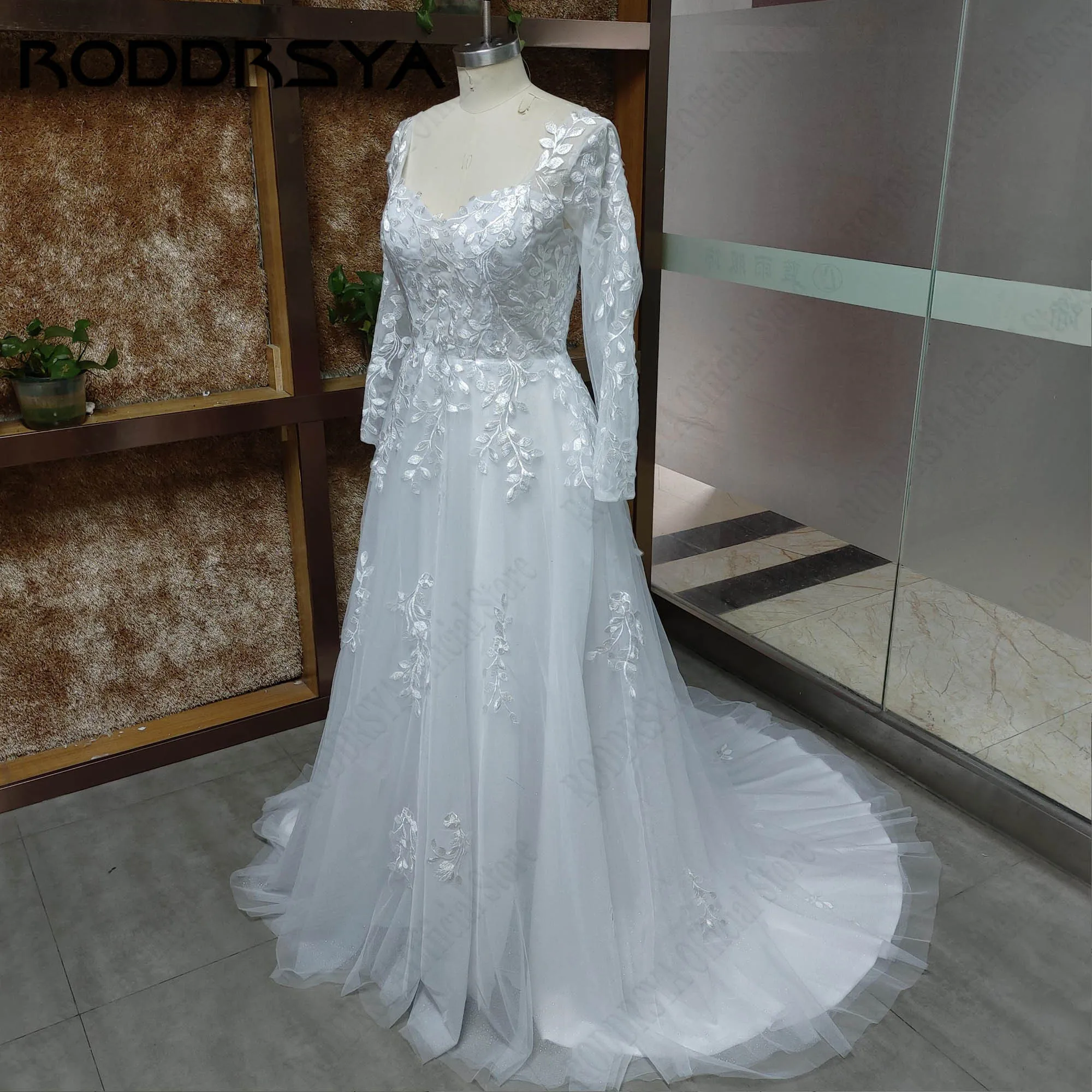 RODDRSYA A-Line Tulle Bridal Dresses Detachable Long Sleeve V-Back Appliques Wedding Gowns Sweetheart robe de mariée Customized