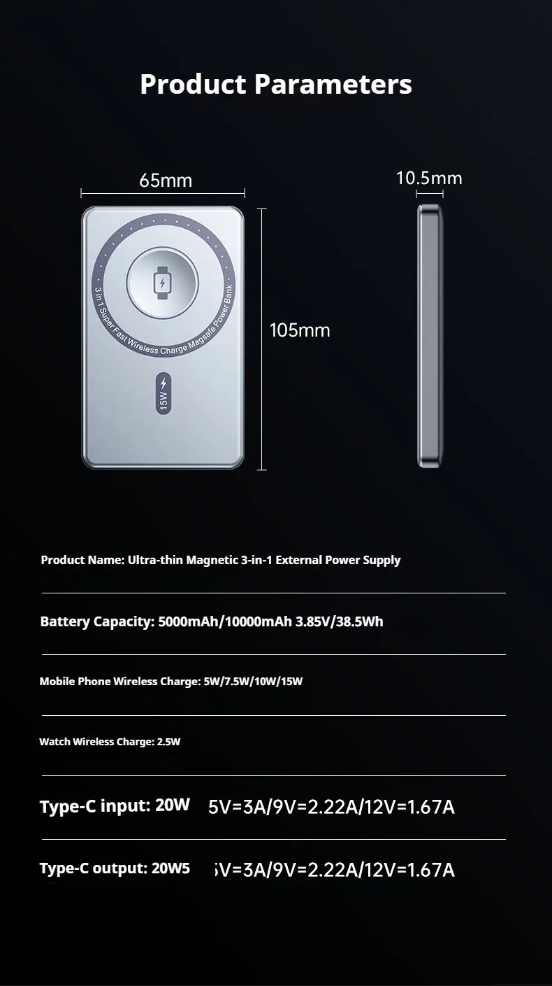 • Features: Wireless Charge,Charger & Battery in 1,With Led Lamp