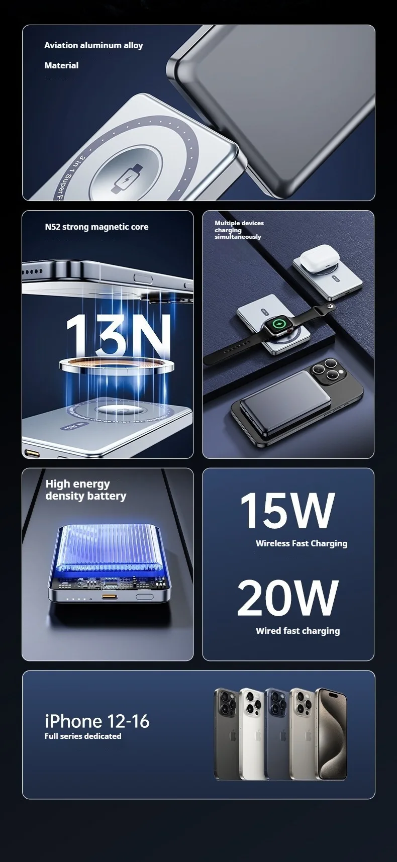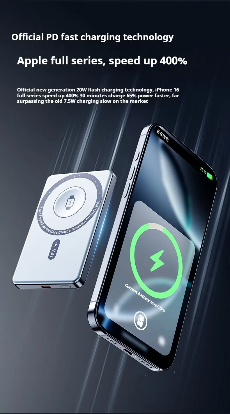 ROMOSS 500000mAh Magnetic Power Bank PD20W Super Fast Charging Large Capacity Wireless External Battery for iPhone Huawei Watch