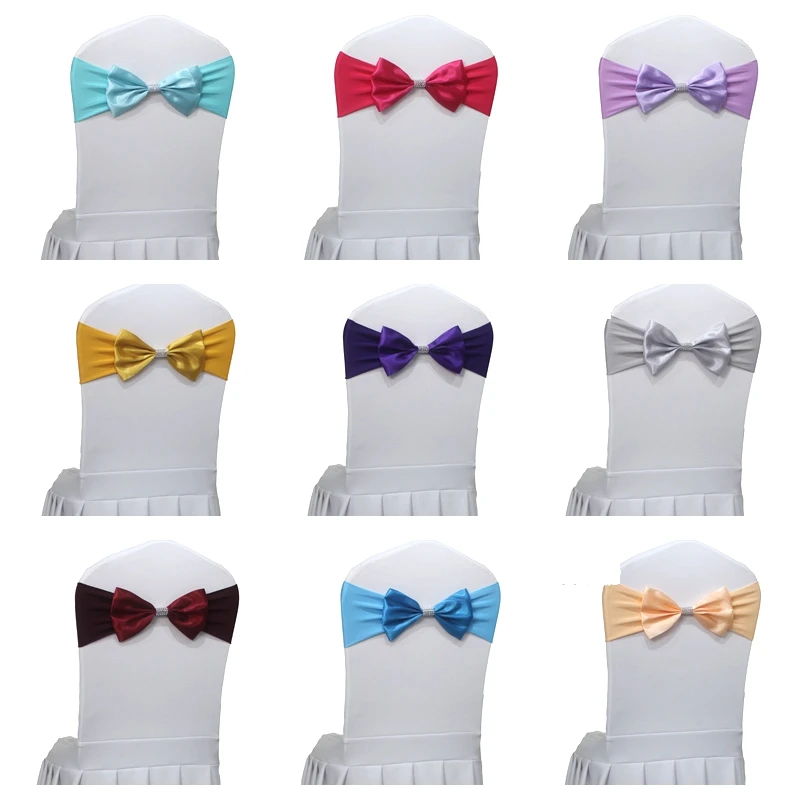 Royal Blue Color Lycra Chair Band Spandex Sash With Satin Bow For Chair Cover Event Wedding Party Christmas Decoration