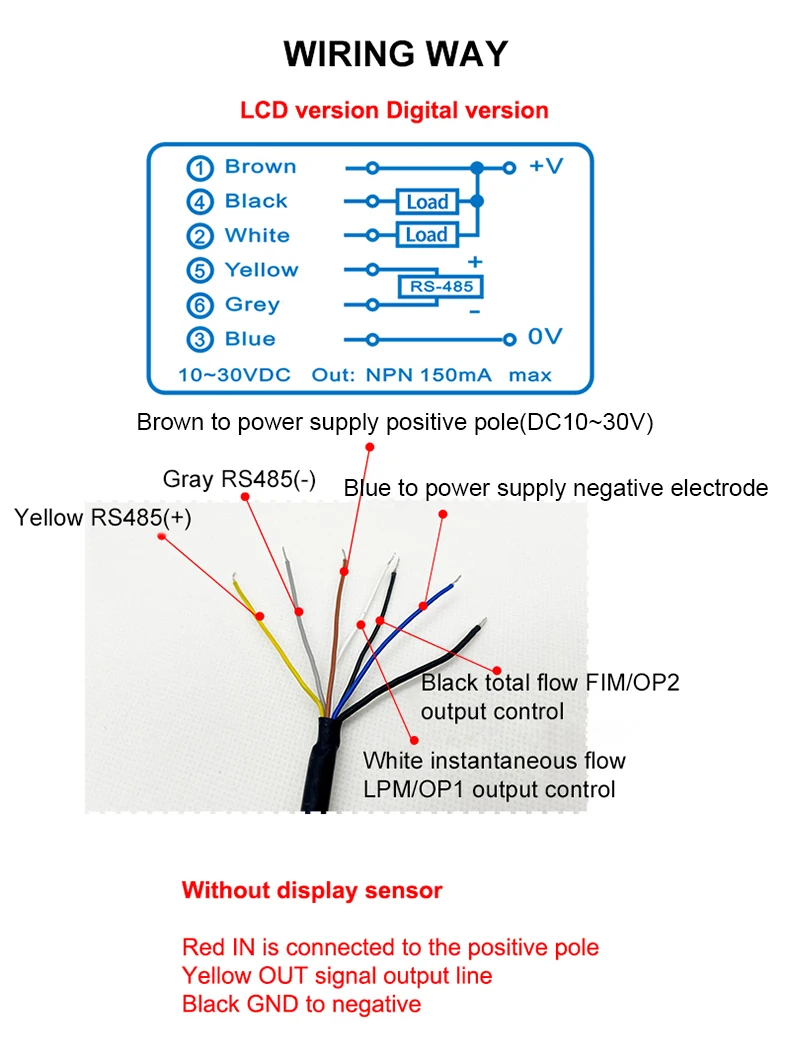 1. LCD version:RS485 data transmission,The display screen is not waterproof, and waterproof measures need to be taken.