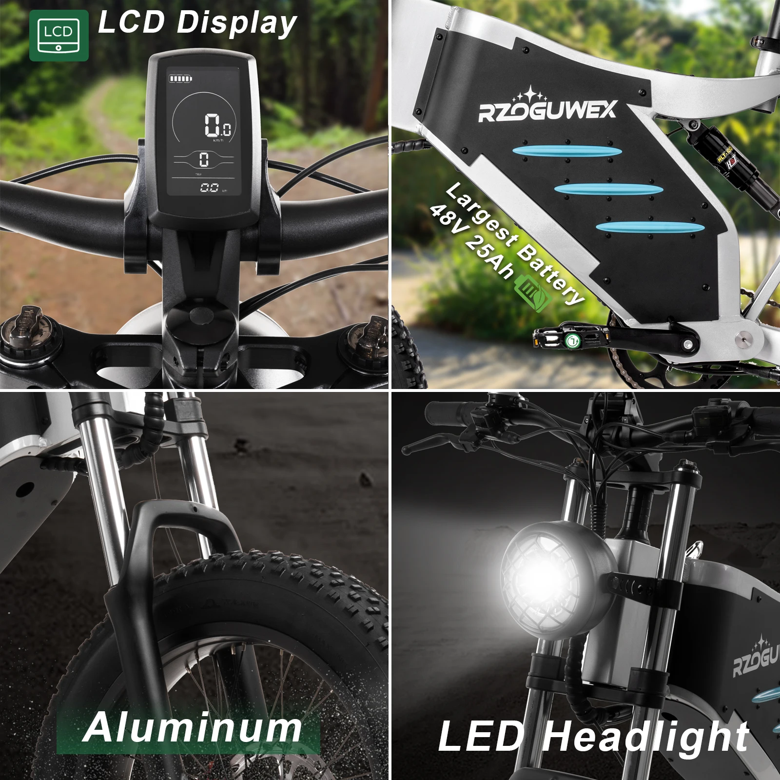 RZOGUWEX X5 Adult Electric Bike 1000W All Terrain Electric Bike 48V25Ah Battery 20 Inch Fat Tire Off-Road Electric Bike