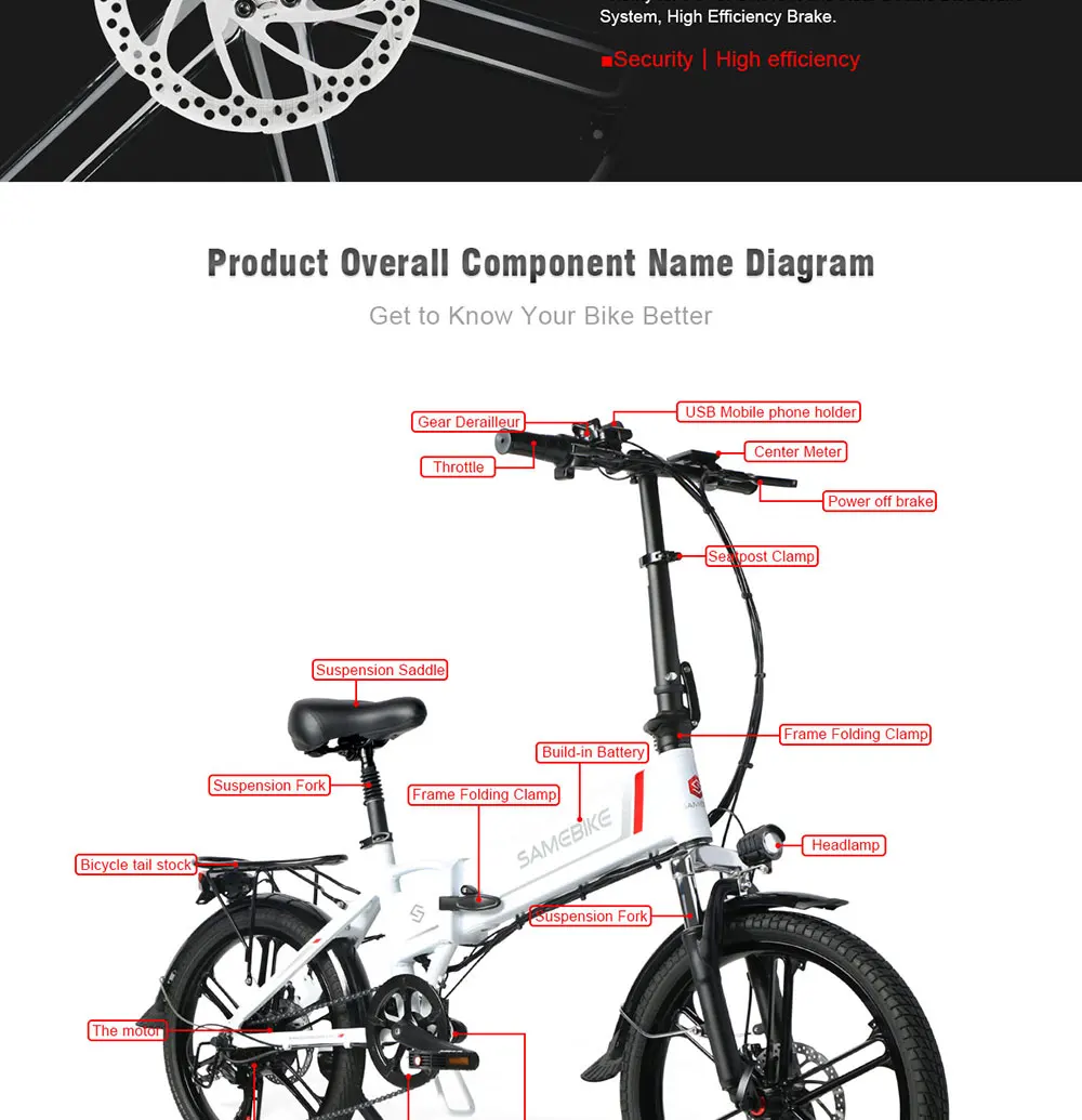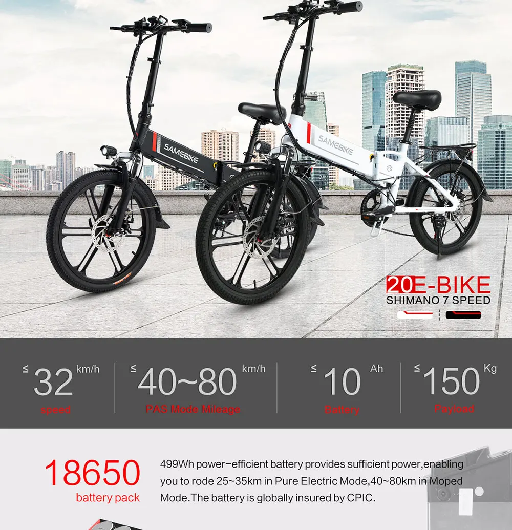 Samebike 20LVXD30-II adult electric bike 350W city ebike 48V10AH E-bike 20 inch folding electric bike