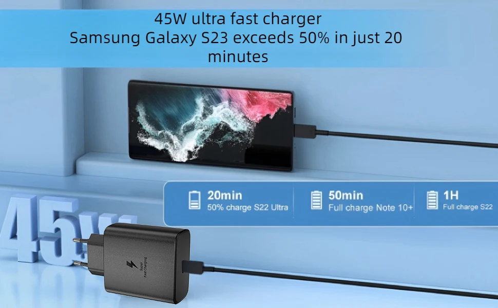 SAMSUNG 45W Type C Charger Original Samsung S24 Ultra PD USB C Adapter Samsung Galaxy S23 S22 S21 Ultra Super Charge Zflip 5