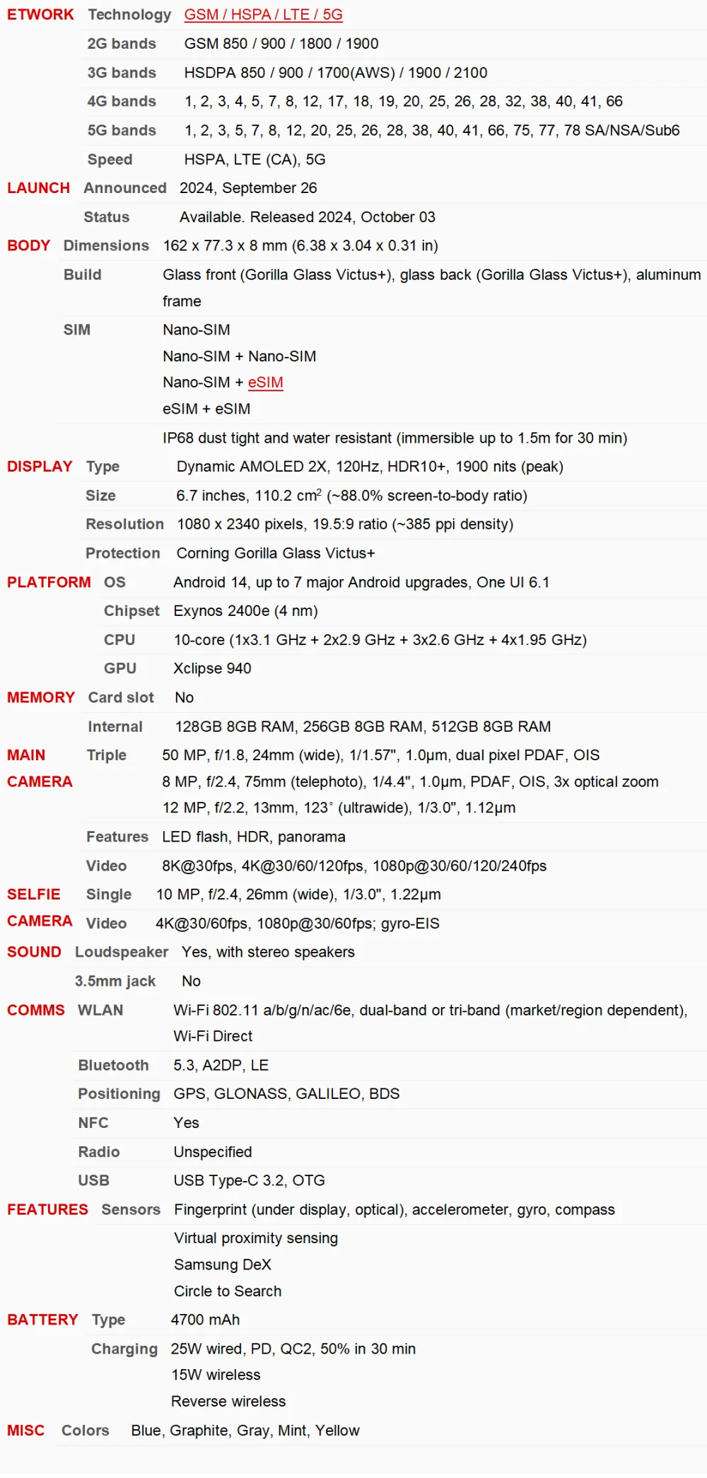 • Samsung Model: Galaxy S 24 FE