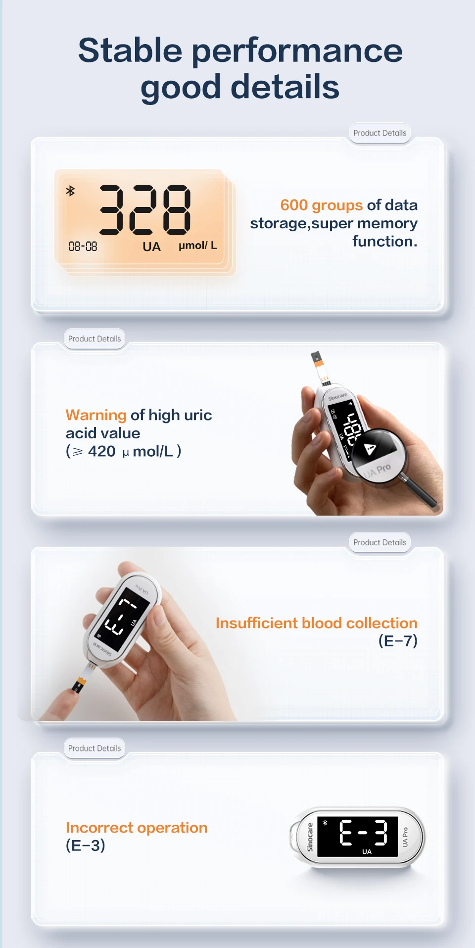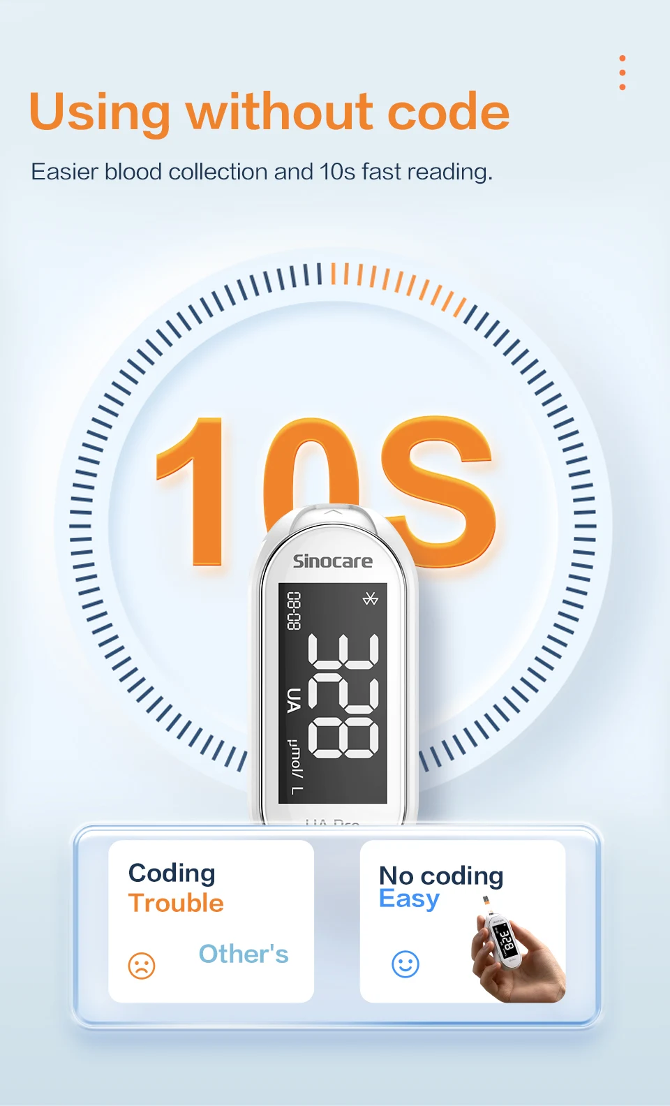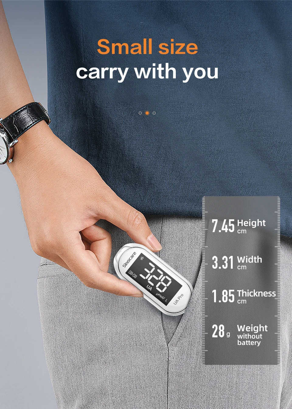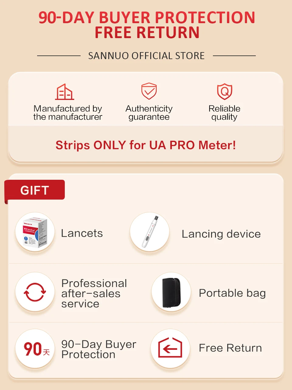 [Meter 100pcs kit]:1*Meter(μmol/L)+1*Portable bag+1*Lancing device+100 Strips +100 Needles