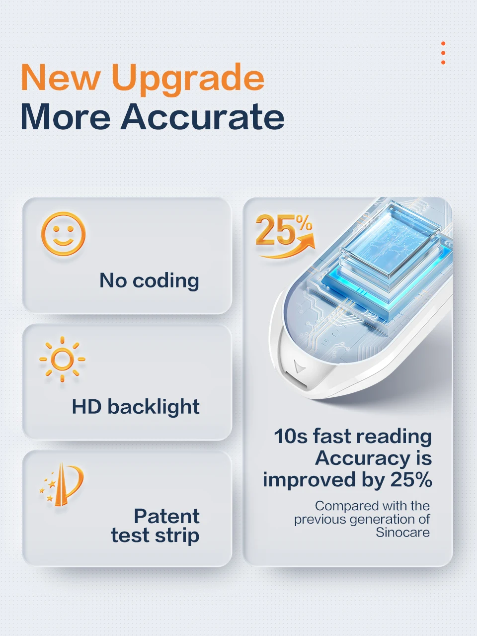 1The Glucose meter can only be used for blood glucose monitoring and cannot be used as a basis for diagnosis or medication.