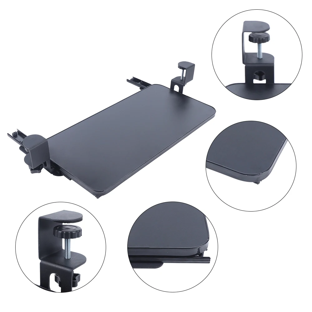 Easy to assemble——Simply attach this under desk keyboard to your desk with two strong clamps and pull tight to hold it in place, no tools required.