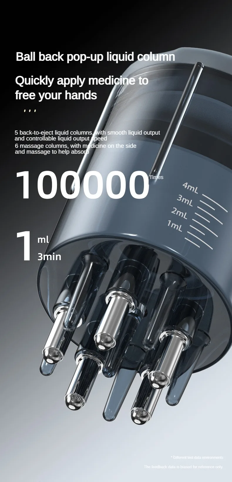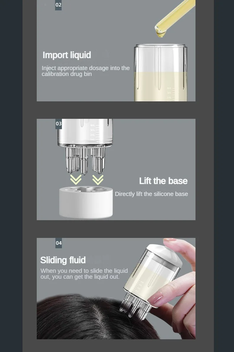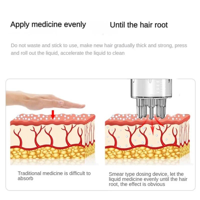 6. Equipped with 5 elastic rolling ball teeth to introduce liquid medicine uniformly into the hair root, and a squeezable handle to control the volume. With it, you’re free from hand stains and medicine waste.