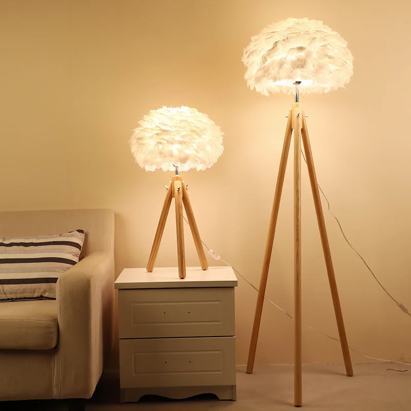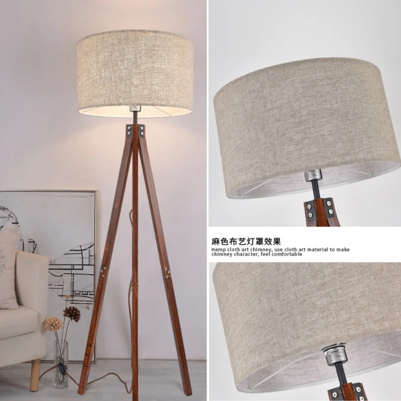 Scandinavian Solid Wood Floor Lamp Living Room Sofa Standing Lamps Creative Tripod Bedroom Vertical Table Lights Home Deco