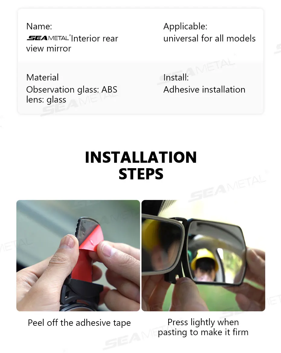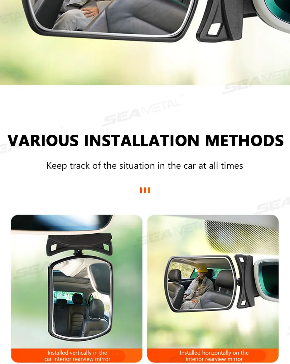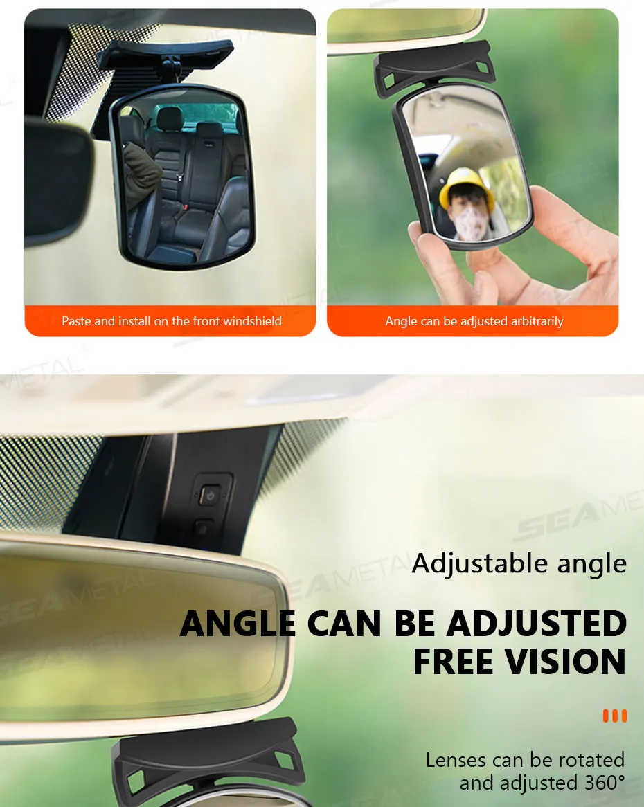 SEAMETAL Car Interior Baby Mirror HD Glass Wide Angle Rear View Mirror 360-Degree Rotation Blind Spot Rearview Convex Mirror