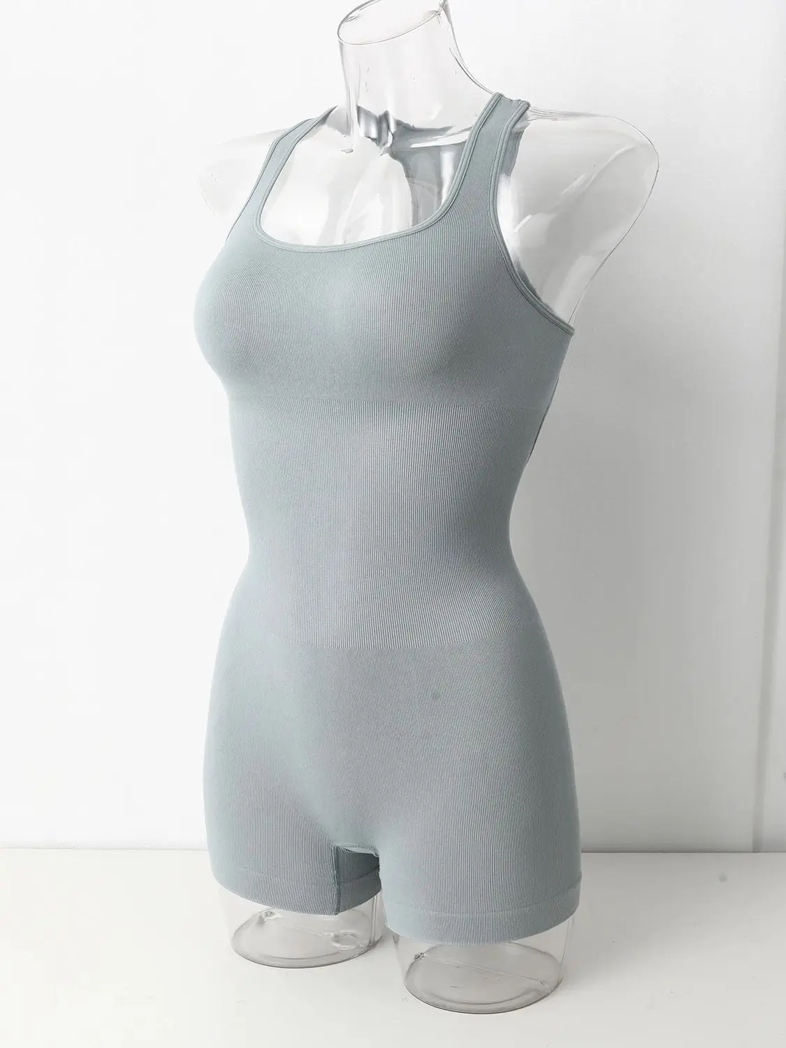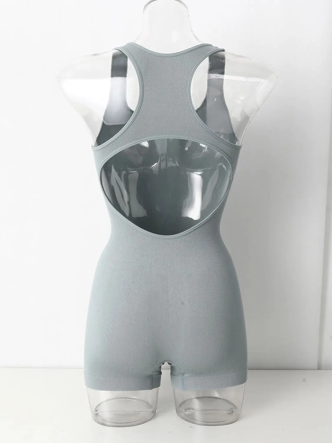 Seamless Backless Jumpsuit Women Sexy Tummy Control One Piece Bodycon Stretch Shorts Tank Top Sleeveless Scrunch Yoga Romper New