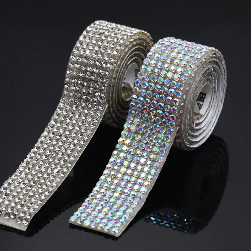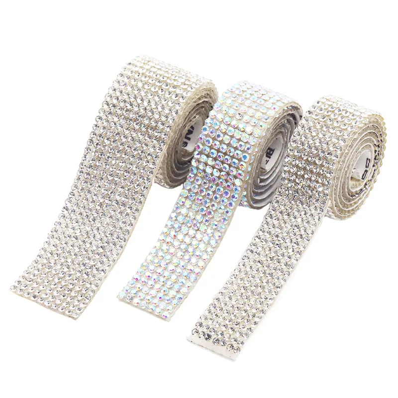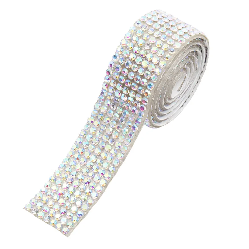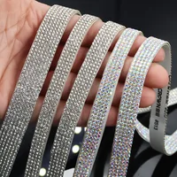 Self-Adhesive AAA Wide Crystal AB Clear Glitter Trim Rhinestone Chain Iron Glue on Hot Fix Tape DIY Shoes Clothing Decoration