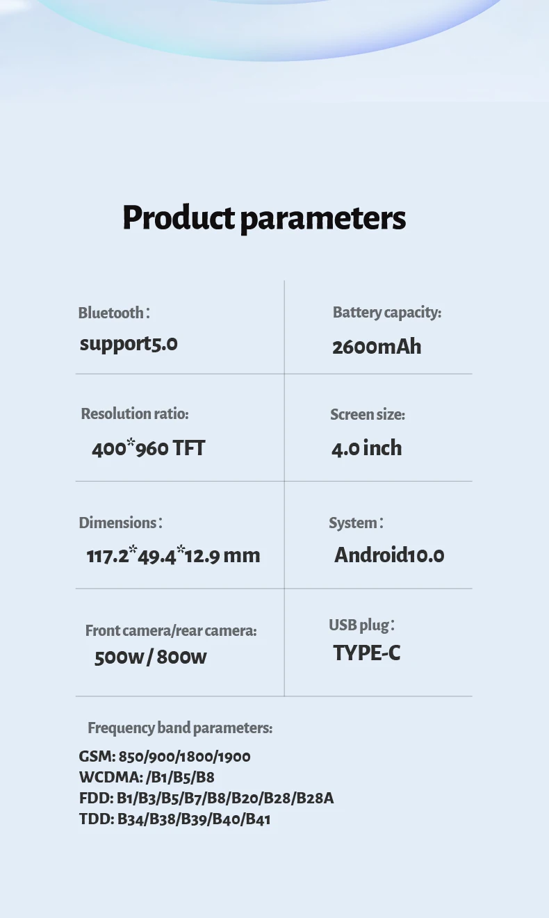 ▸ Screen Size : 4.0 inch HD 400*960 Screen