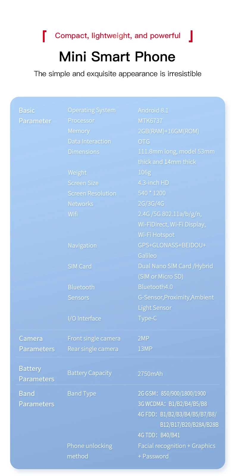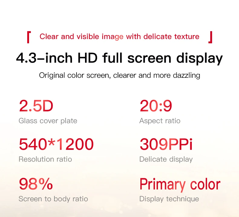 ◆ Screen Size : 4.3 inch HD 540*1200 Screen