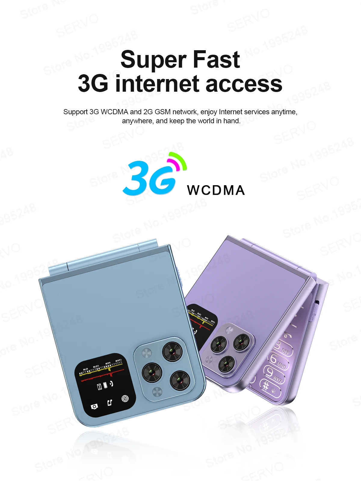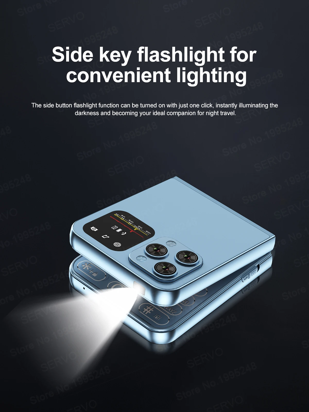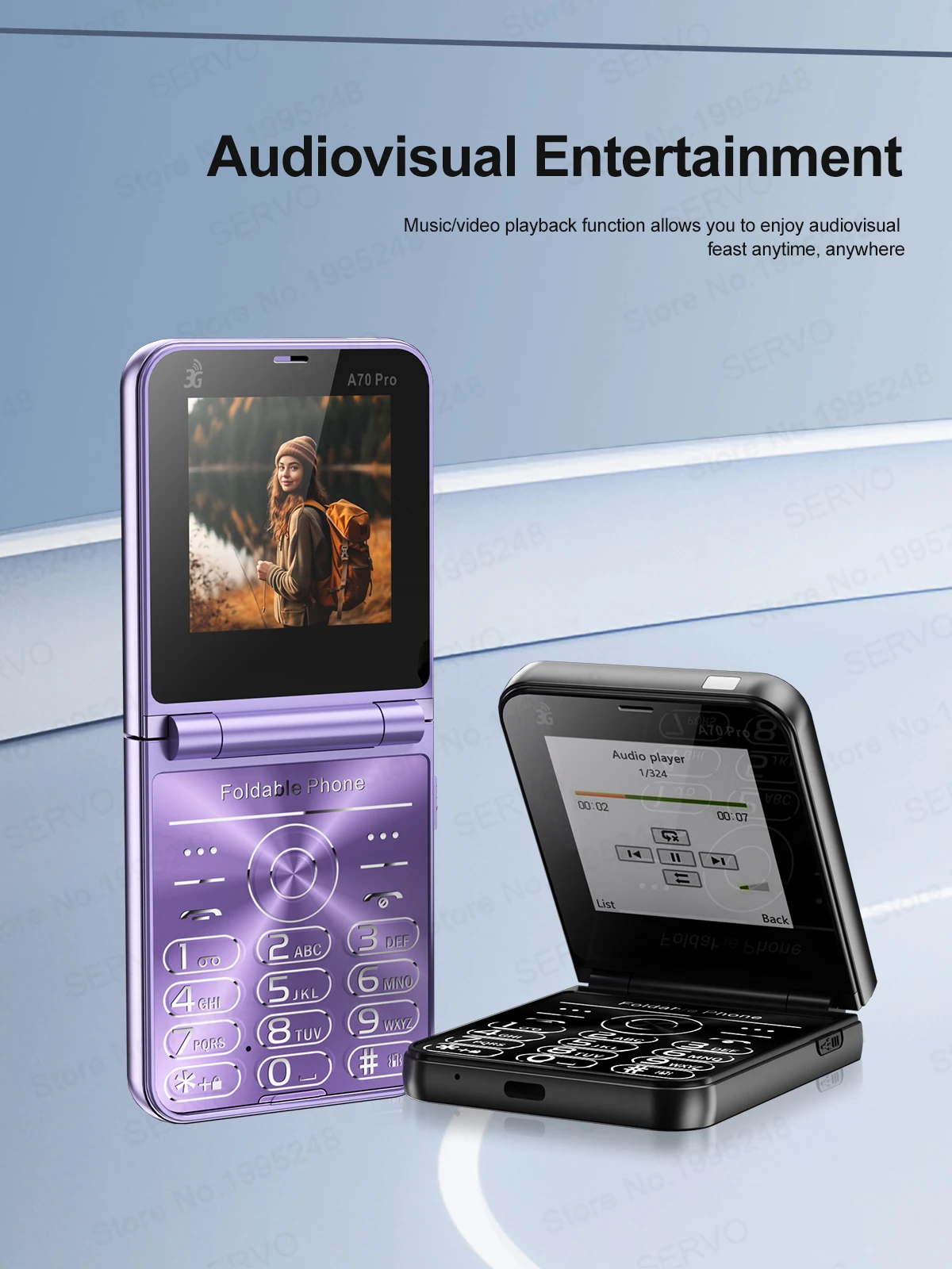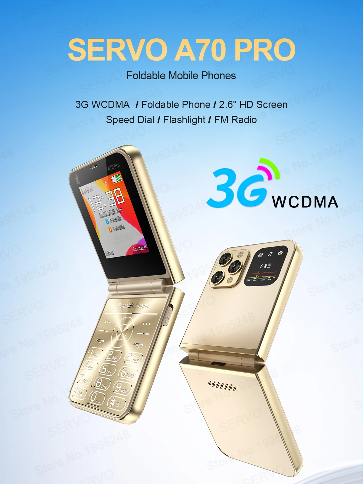 SERVO A70 PRO 180° Flip Mobile Phone 3G WCDMA Dual SIM Auto Call Record 2.6 inch HD Screen Flashlight Pocket Palm Phone TYPE-C