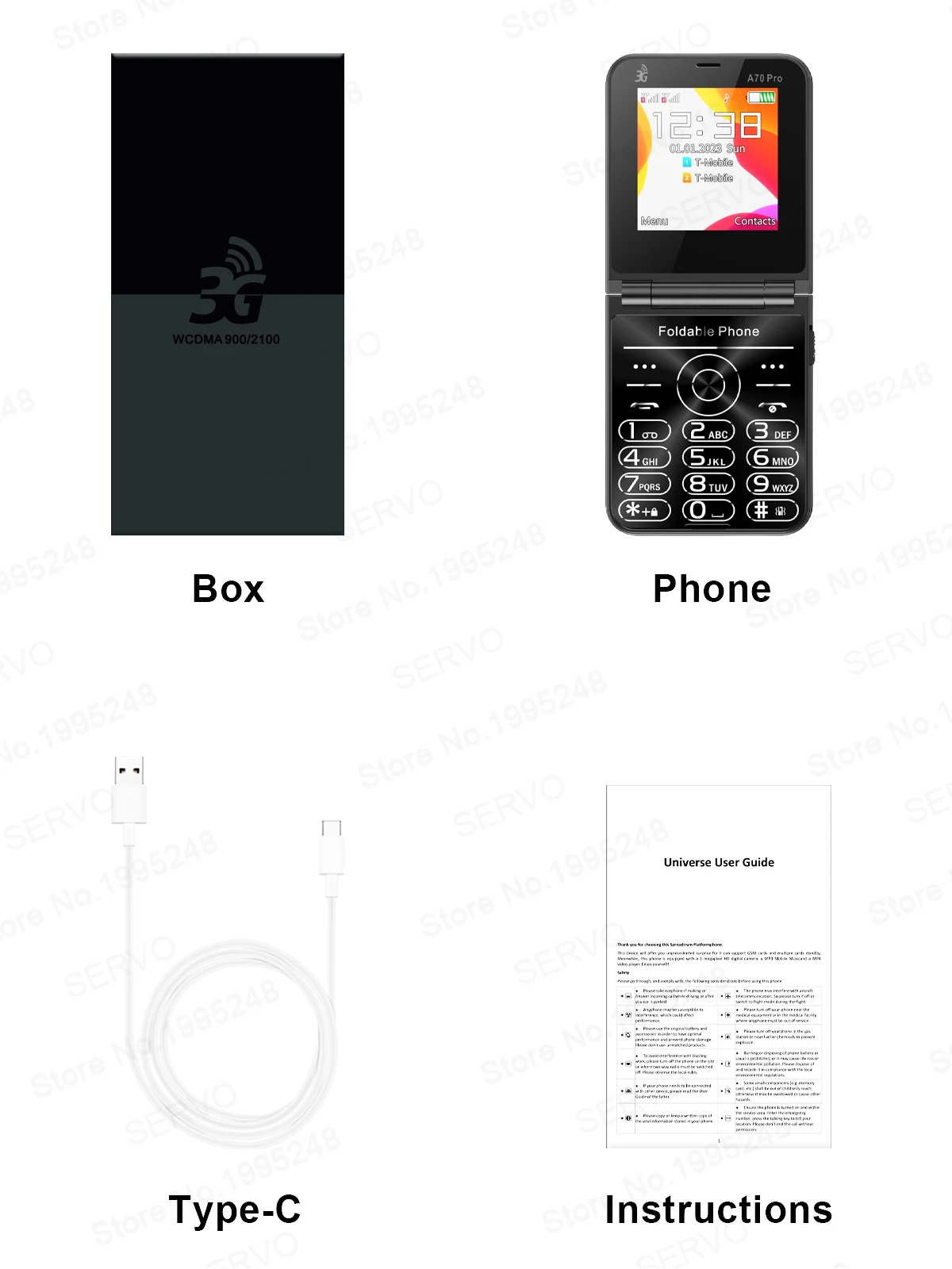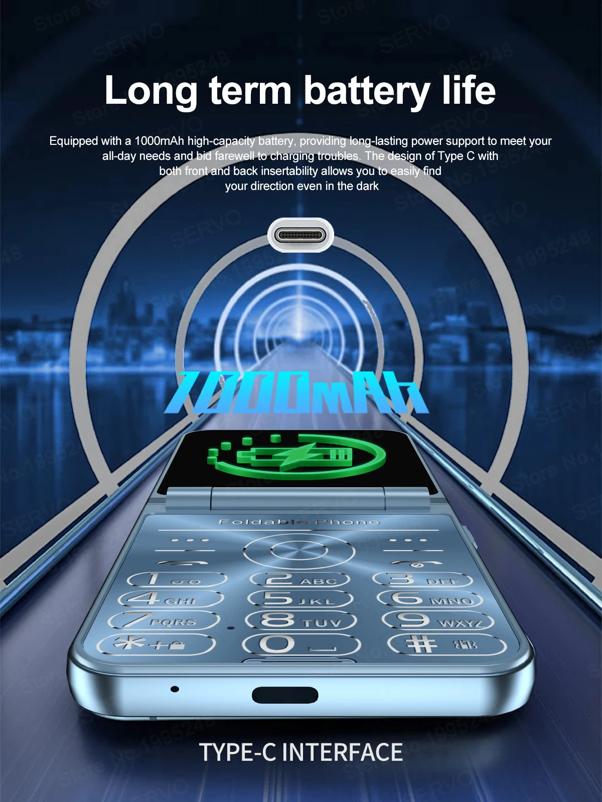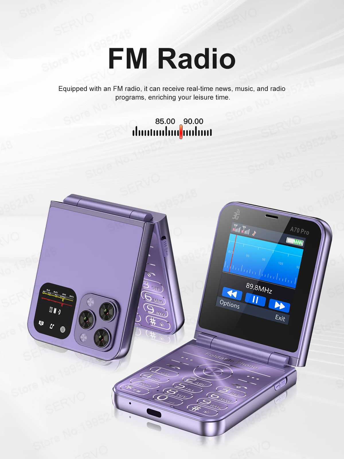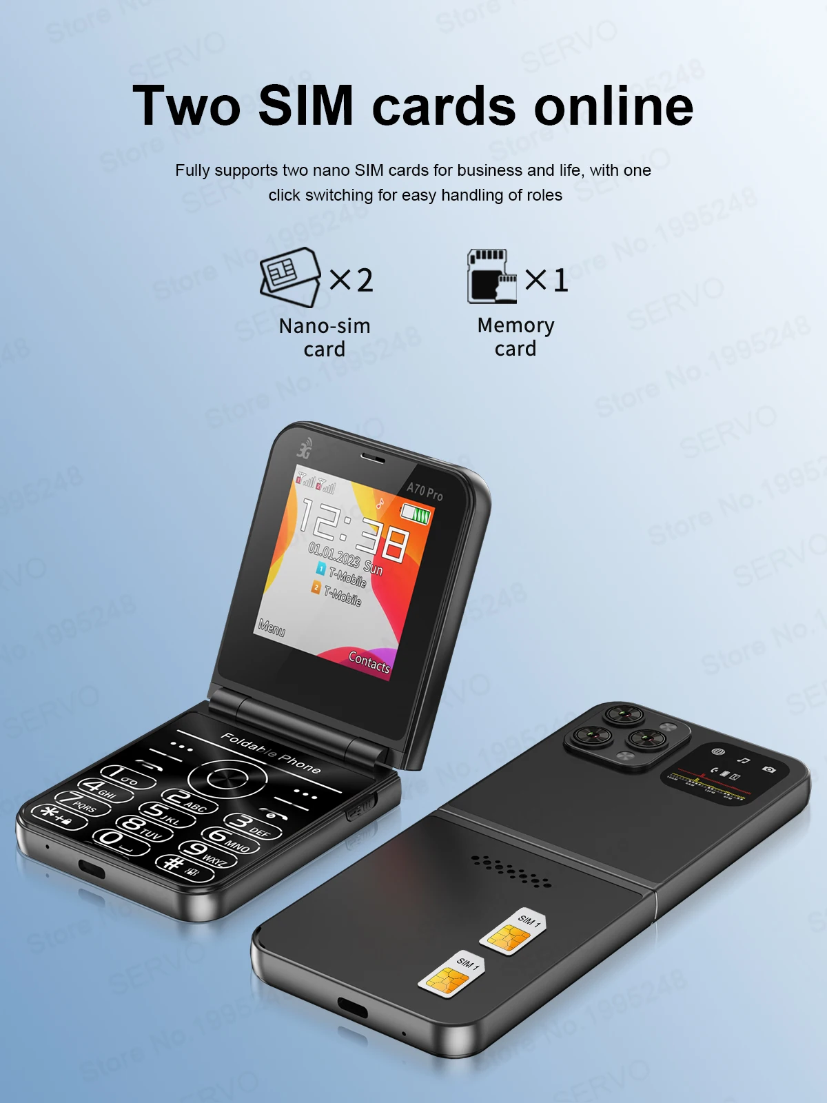 SERVO A70 PRO 180° Flip Mobile Phone 3G WCDMA Dual SIM Auto Call Record 2.6 inch HD Screen Flashlight Pocket Palm Phone TYPE-C