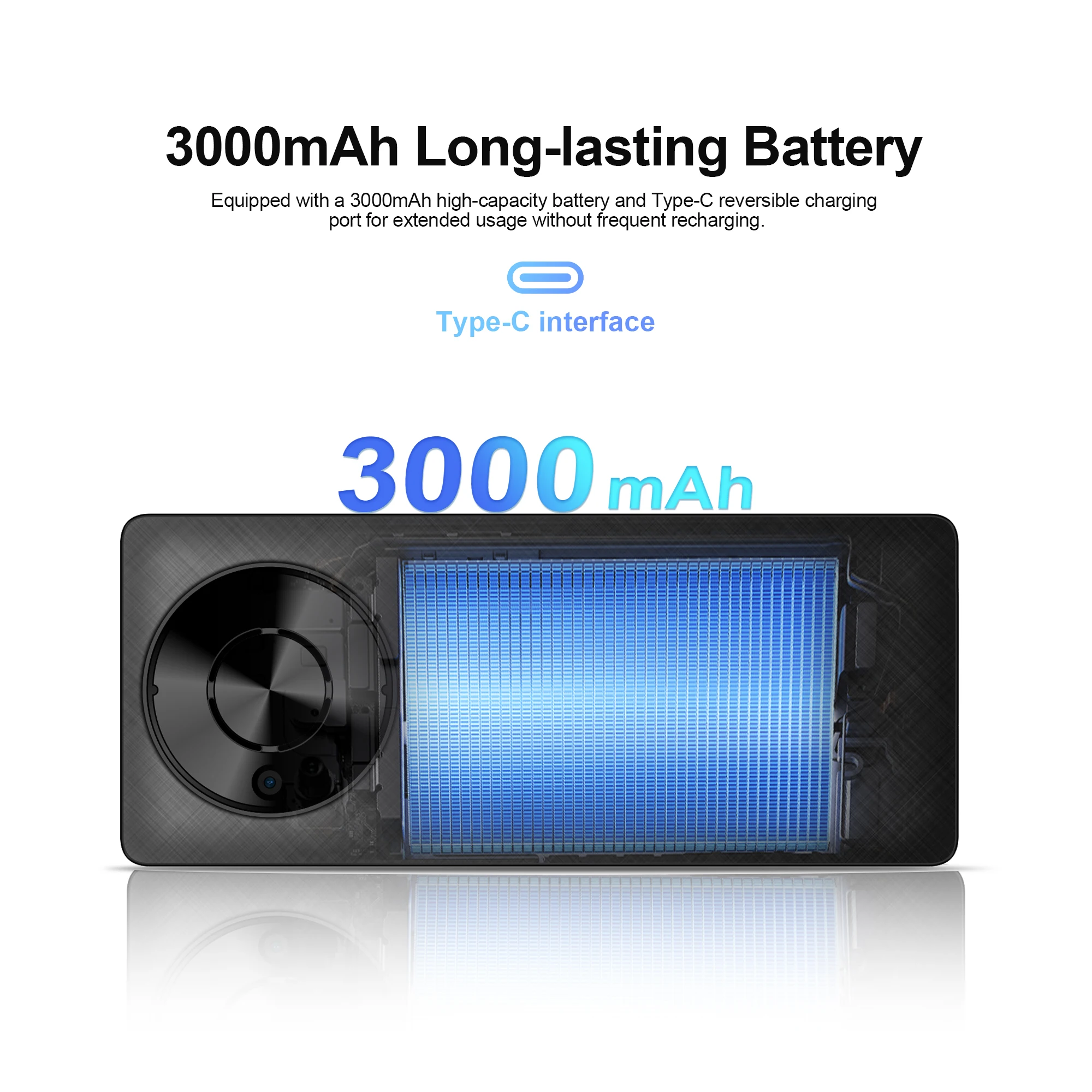 Equipped with a 3000mAh high-capacity battery and Type-C reversible charging port for extended usage without frequent recharging.