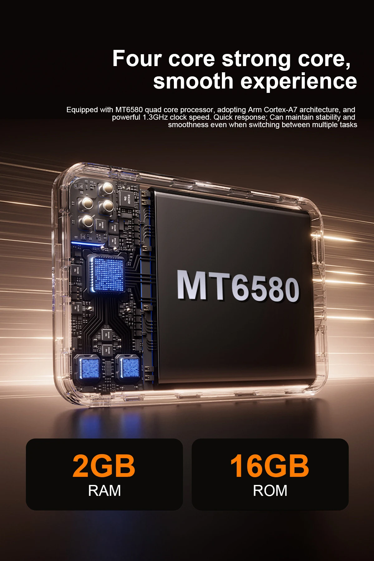 ▸CPU : MT6580, Four core Arm Cortex-A7 processor 1.3GHz