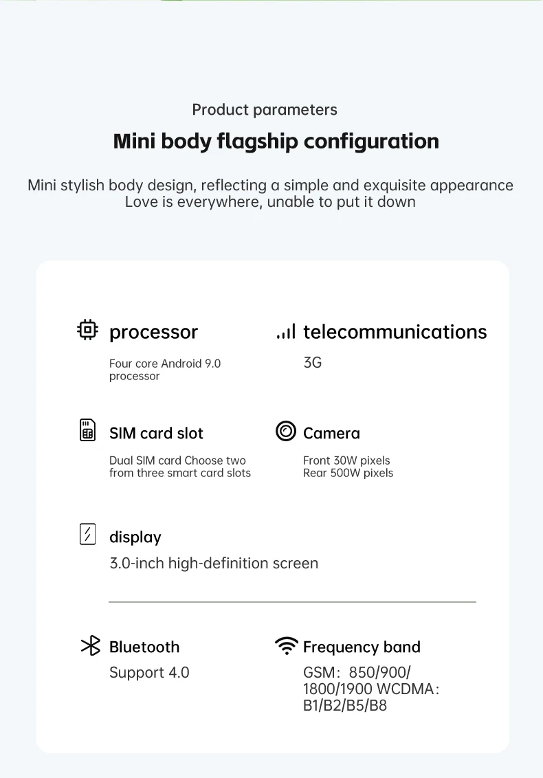 ▸Screen Size :3.0 inch HD 480*854 Screen