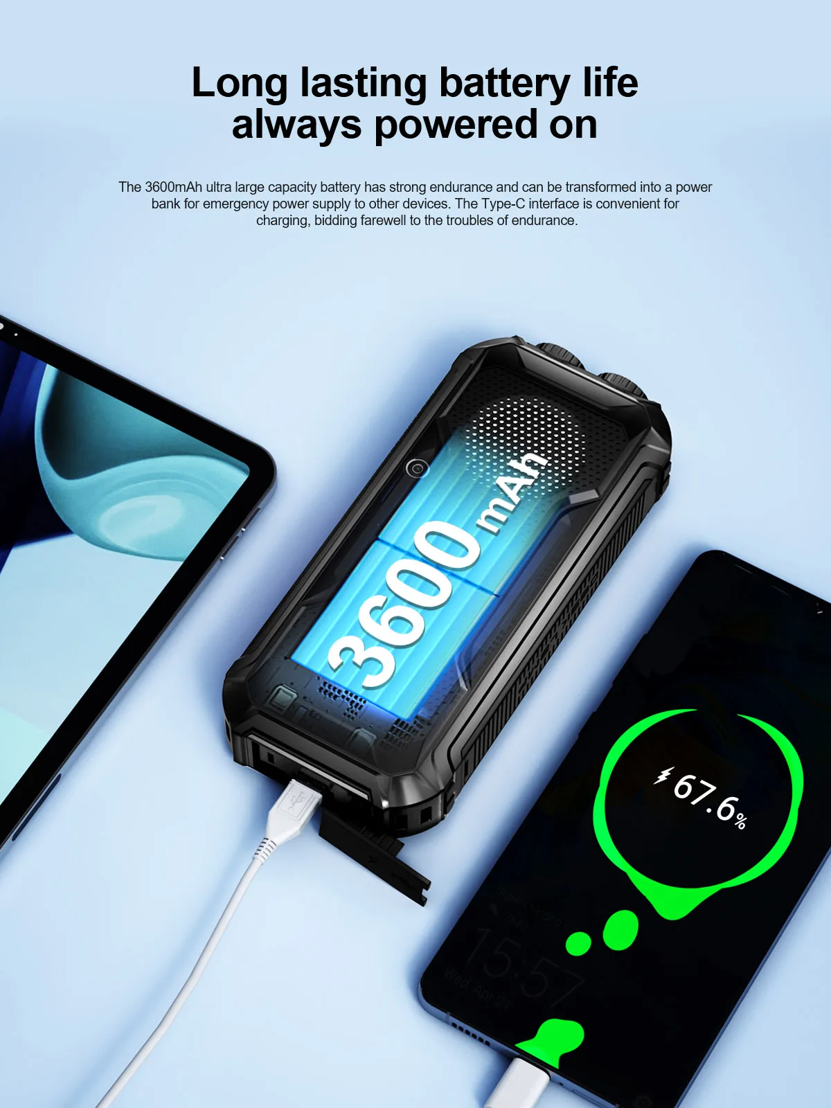 ◆ 3600mAh detachable battery