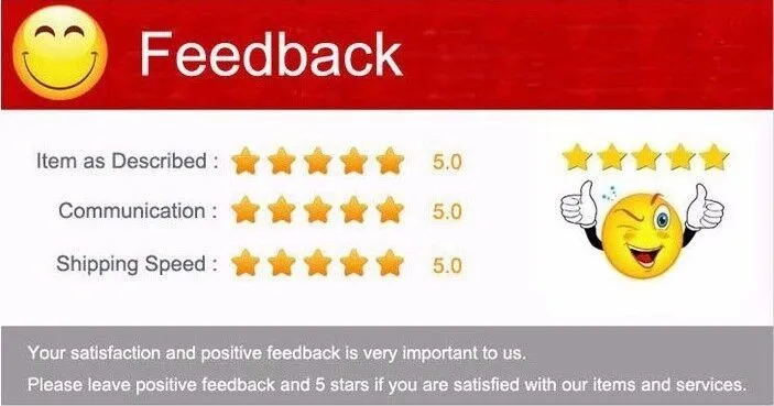We hope for 5 stars feedback very much. If you are not satisfied with the item, please contact us before leaving the feedback. Patience and understanding are virtues. We will give VIP membership to good clients based our cooperation records!