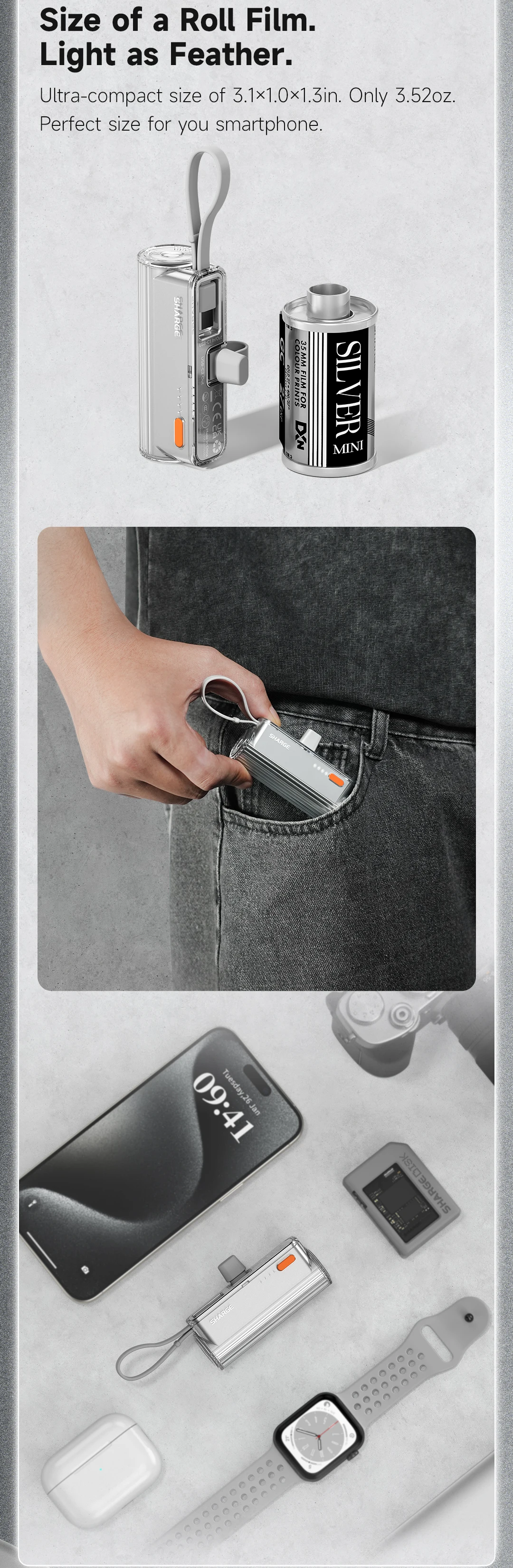 Ultra-compact size of 3.1×1.0x1.3in.
