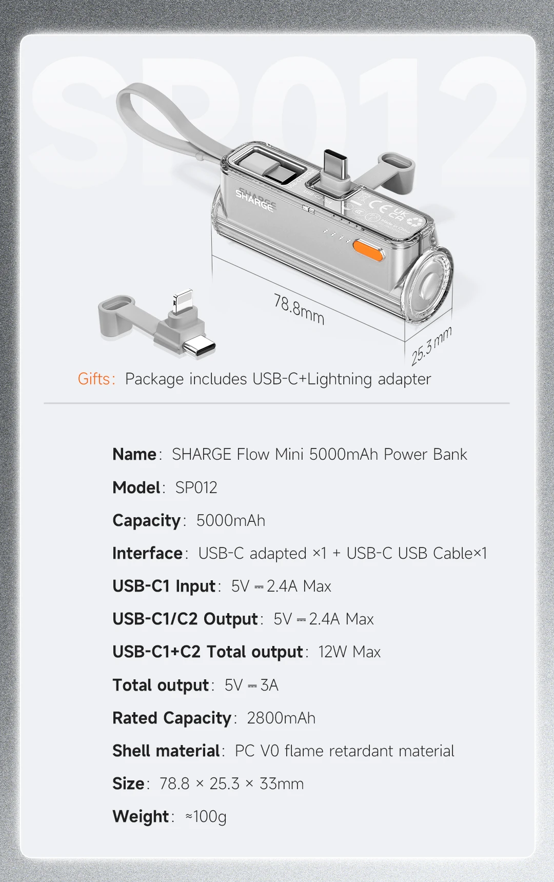 - Output Interface: LIGHTNING,USB-Type C
