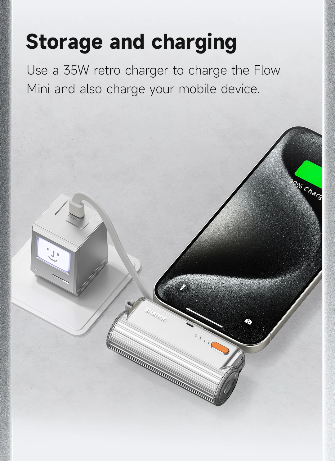Use a 35W retro charger to charge the Flow Mini and also charge your mobile device