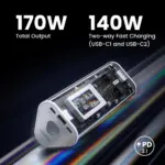 - Output USB-C2: 5V/3A, 9V/3A, 12V/3A, 15V/3A, 20V/5A, 28V/5A (140W Max)