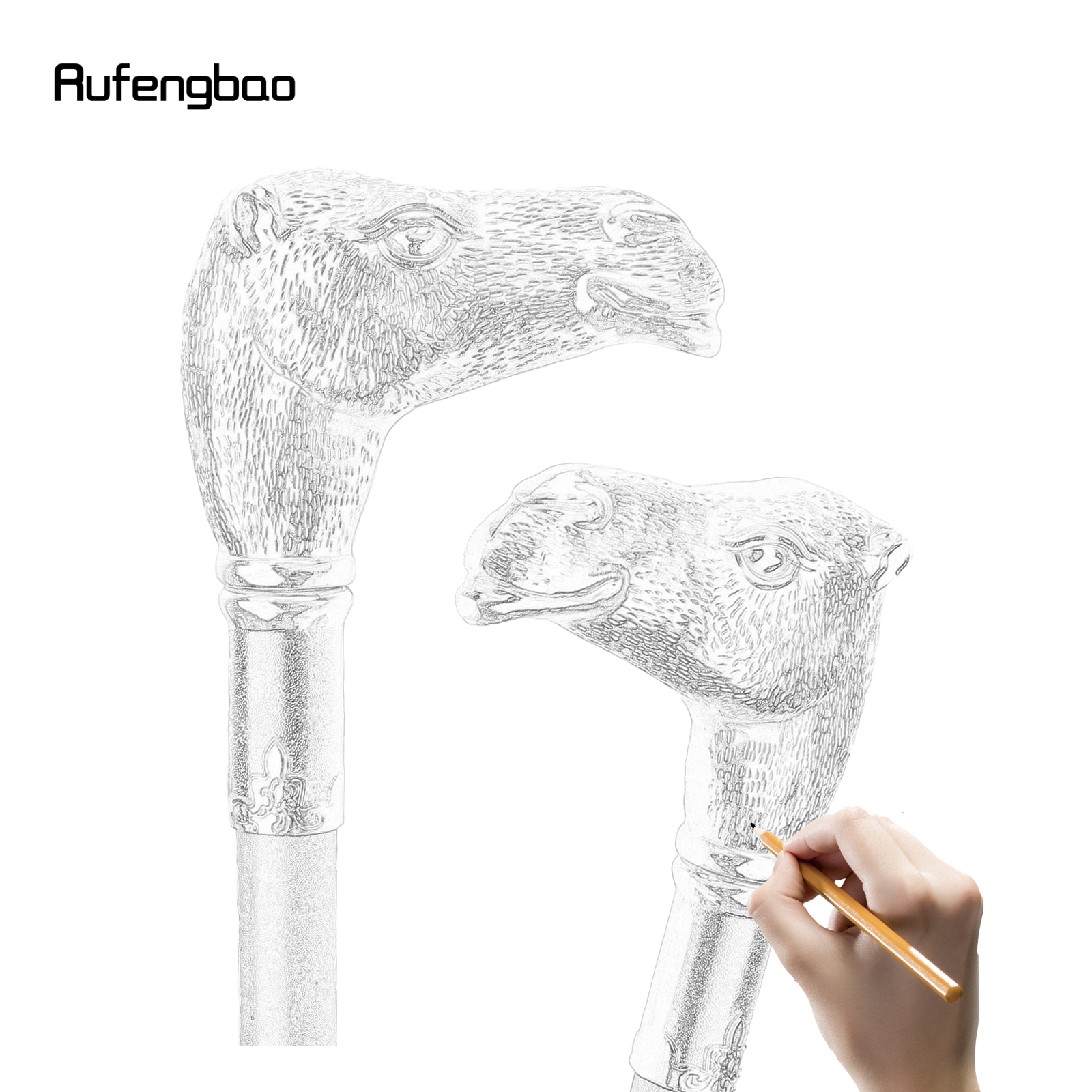 Silver Camel Head Walking Cane Fashion Walking Stick Gentleman Luxury Crosier Knob Walking Stick 93cm