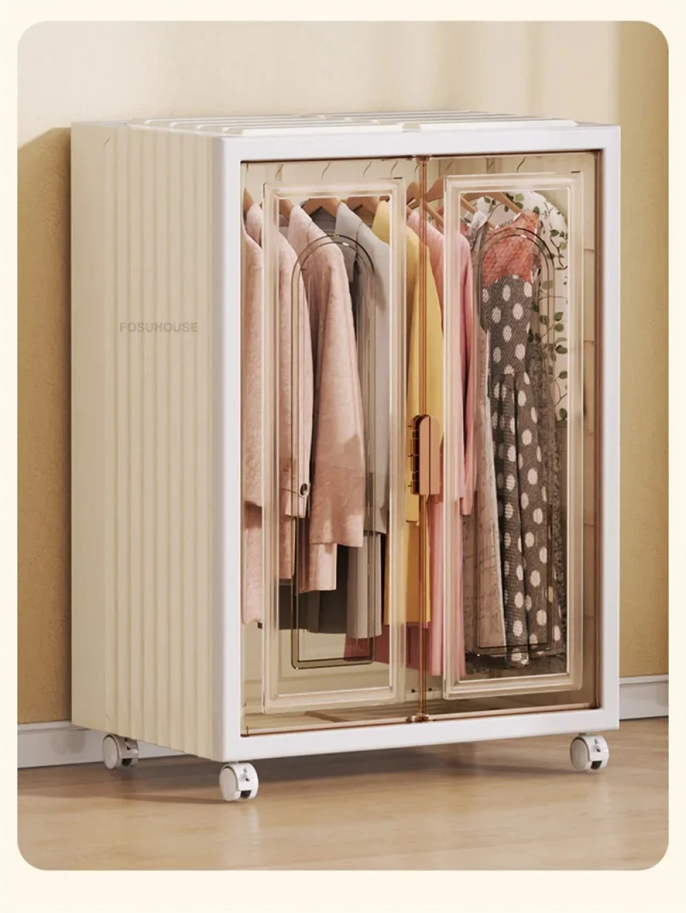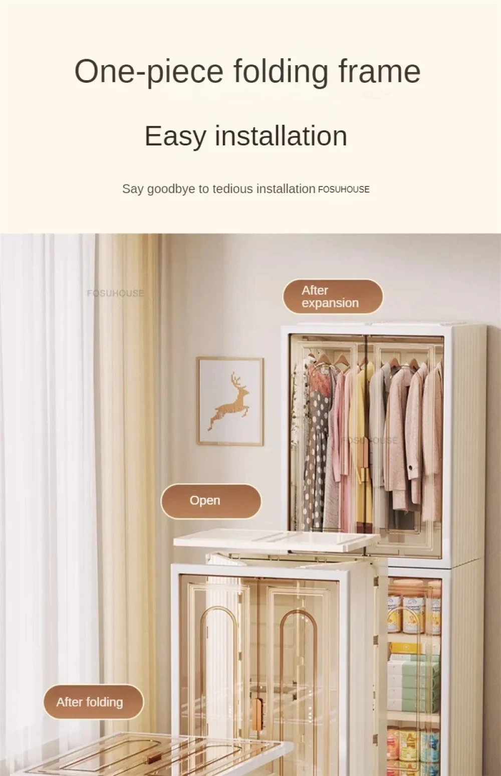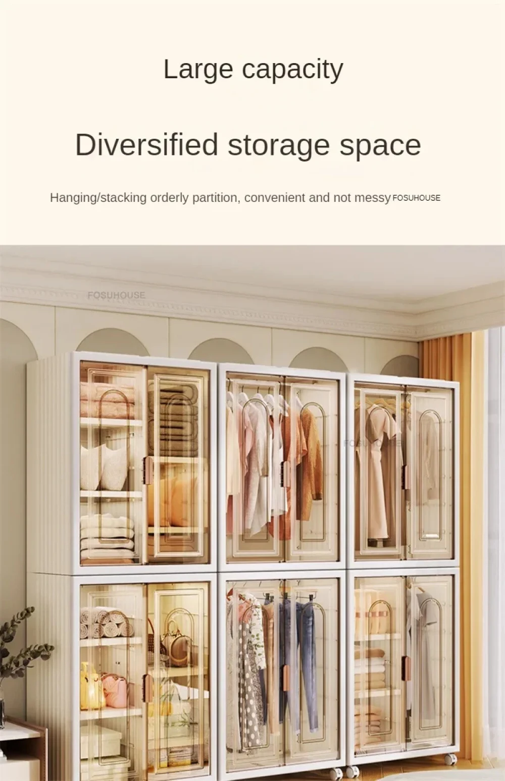 Simple Folding Storage Cabinets Portable Living Room Cabinet Wheel-type Large Capacity Storage Cabinet Stack-able Wardrobe