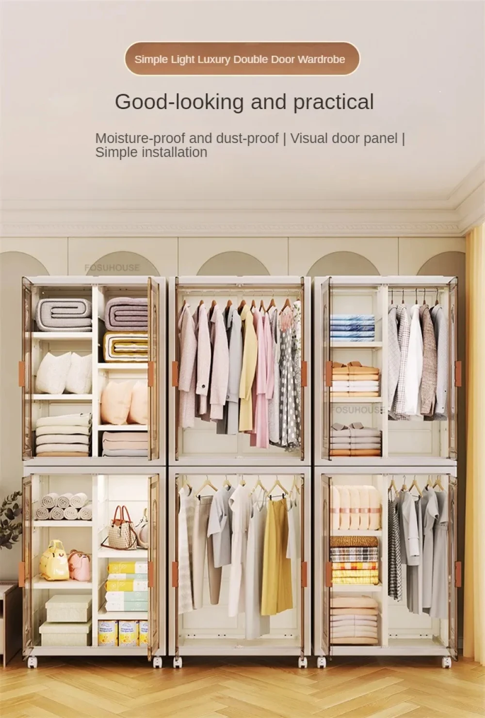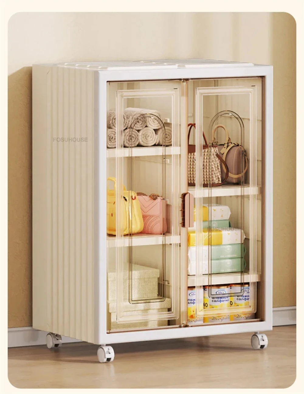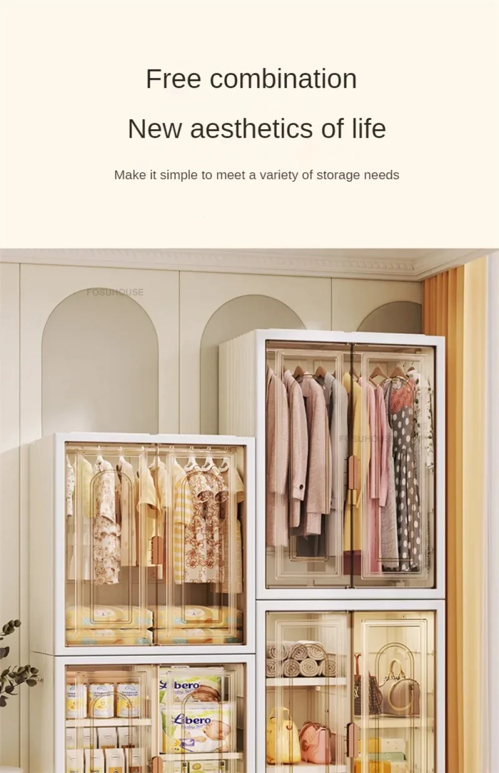 Simple Folding Storage Cabinets Portable Living Room Cabinet Wheel-type Large Capacity Storage Cabinet Stack-able Wardrobe